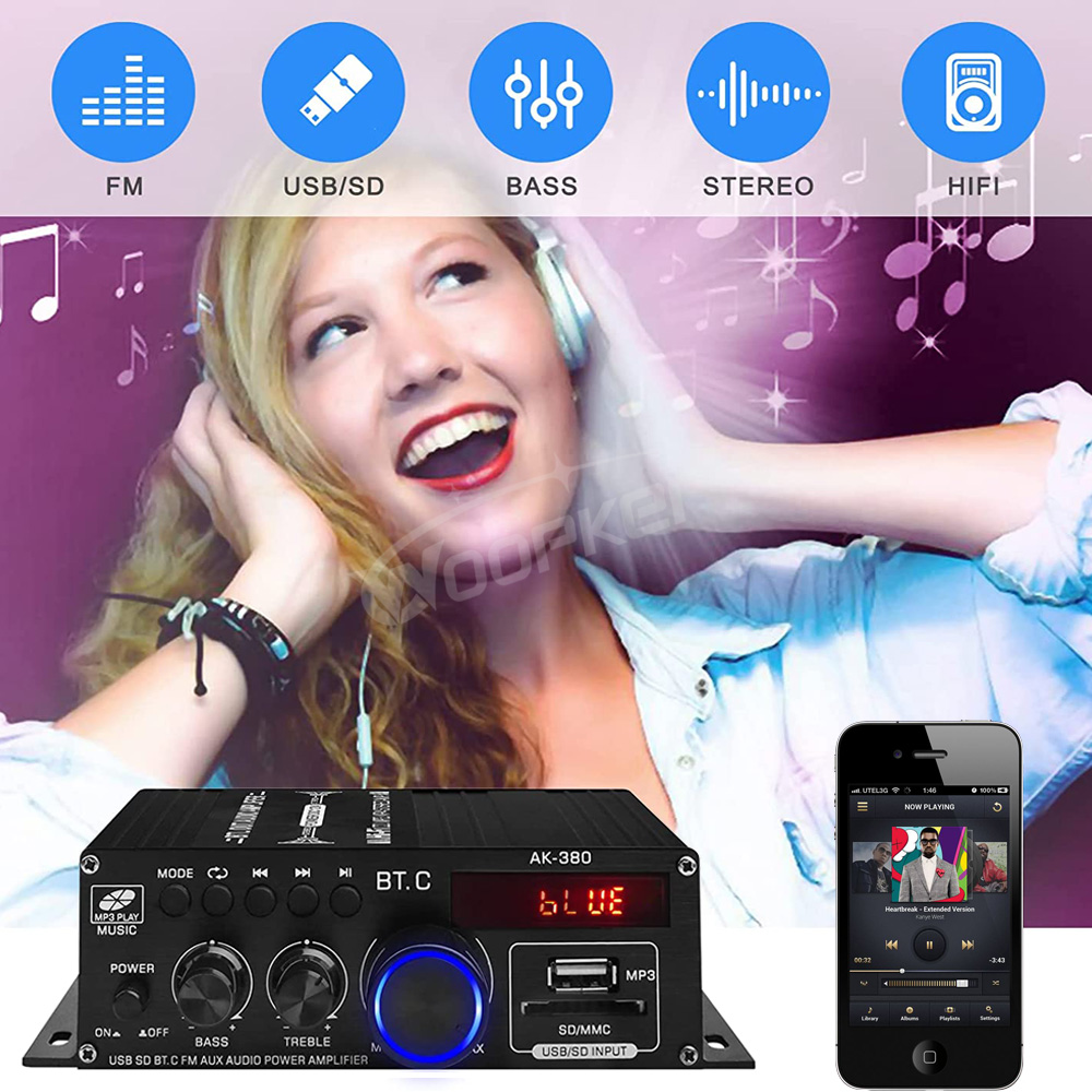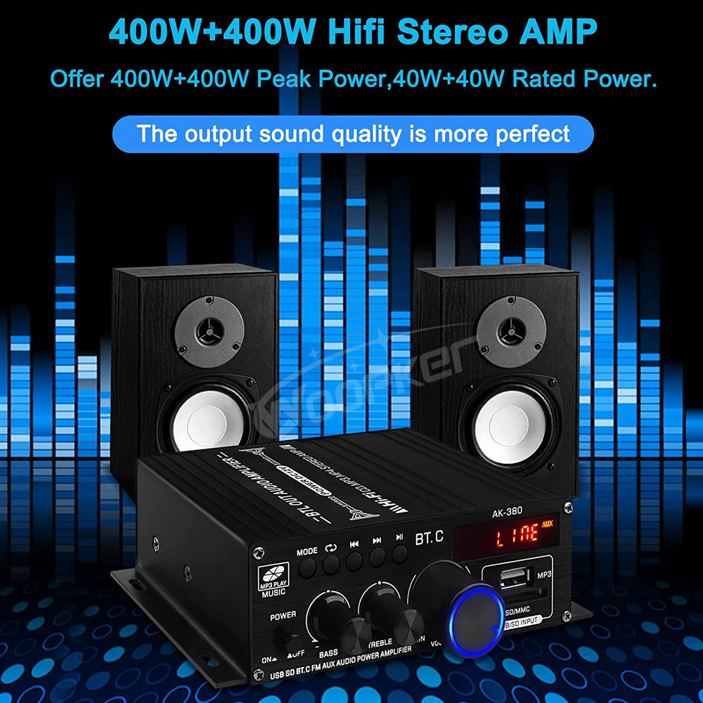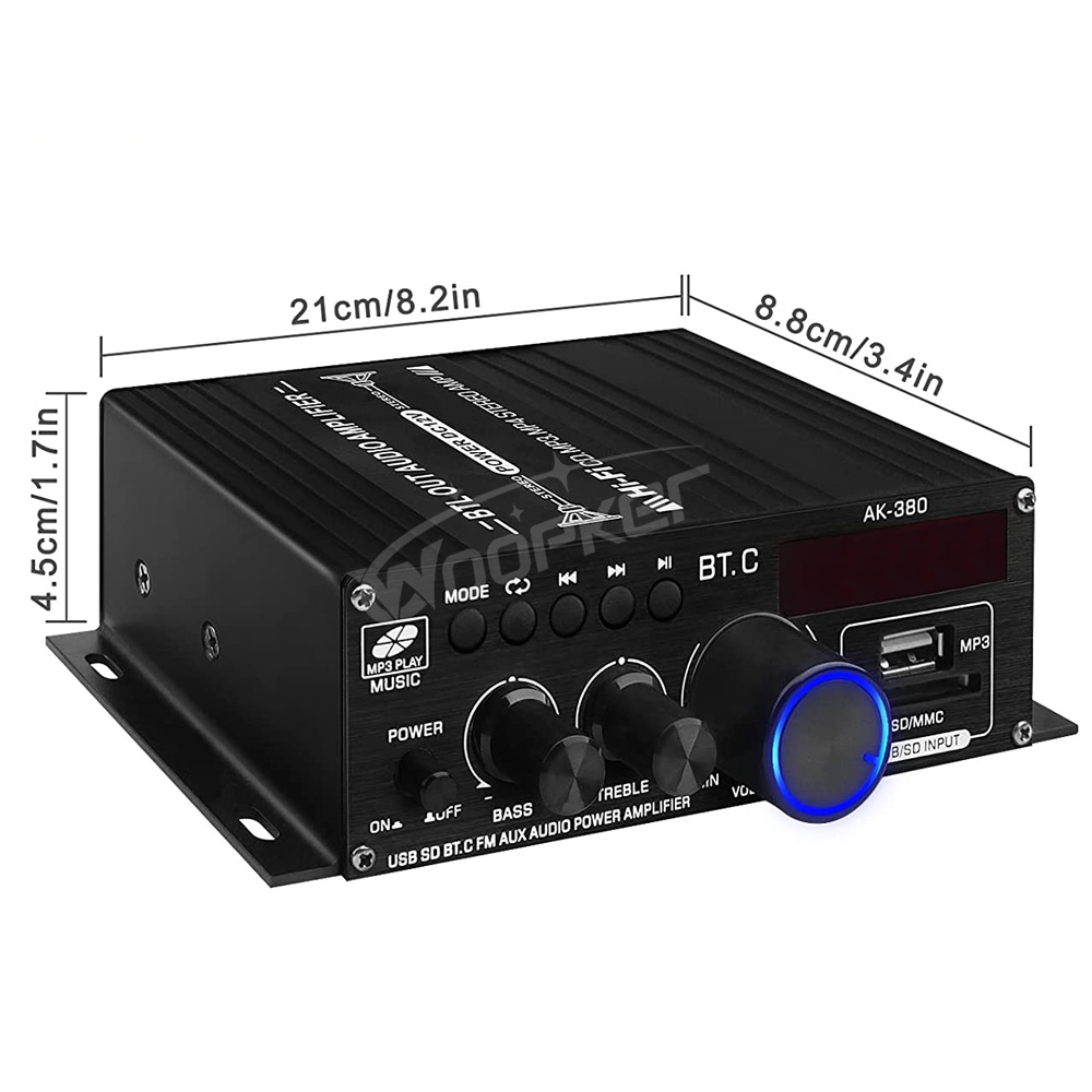 Усилитель звука Woopker, канал 2,0, HIFI, Bluetooth, домашнее цифровое аудио 12 В, 3 А, AK380, AK370, AK280, AK270, AK170 для автомобиля, бас, Trebl