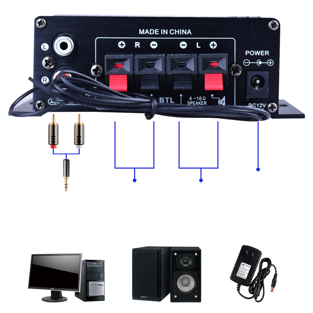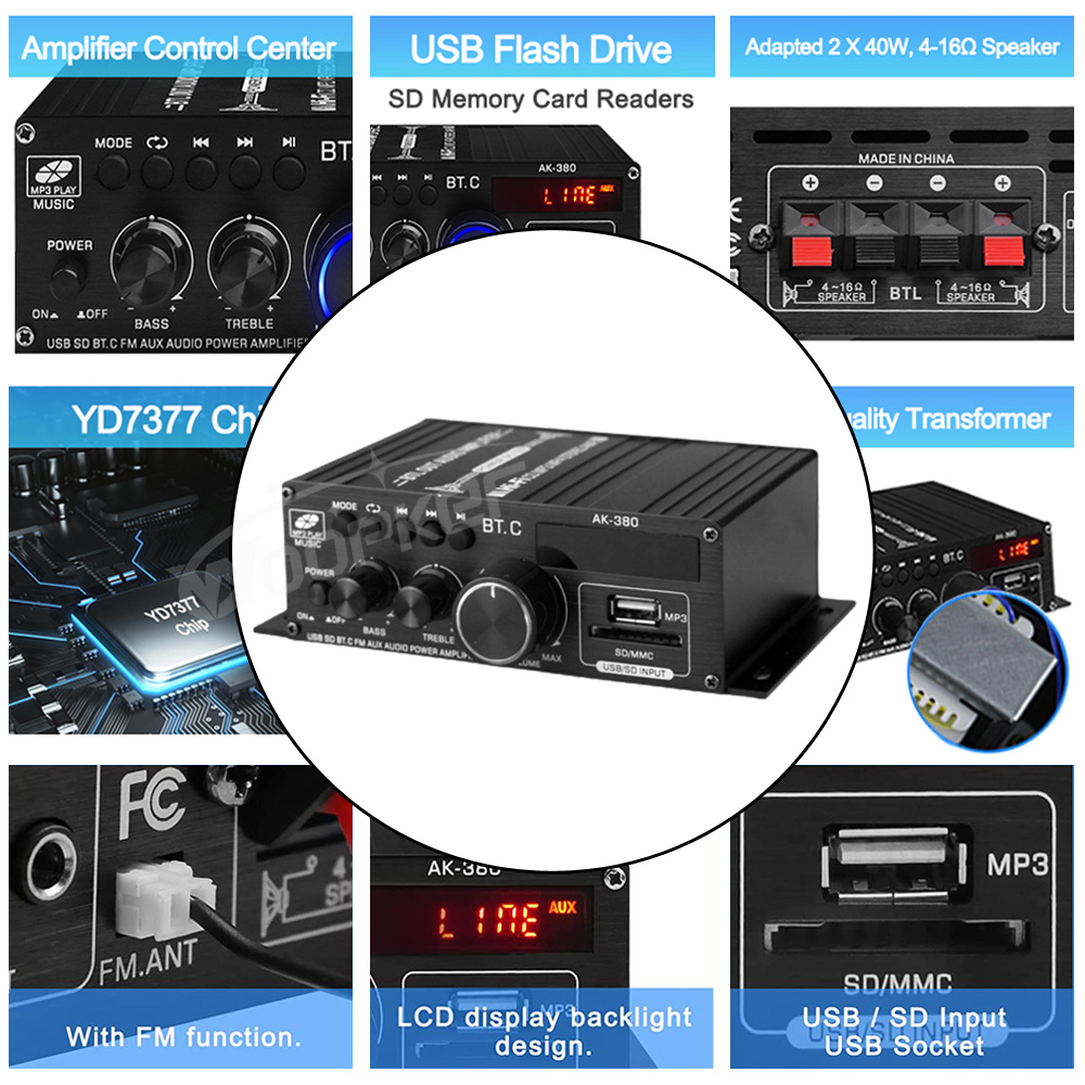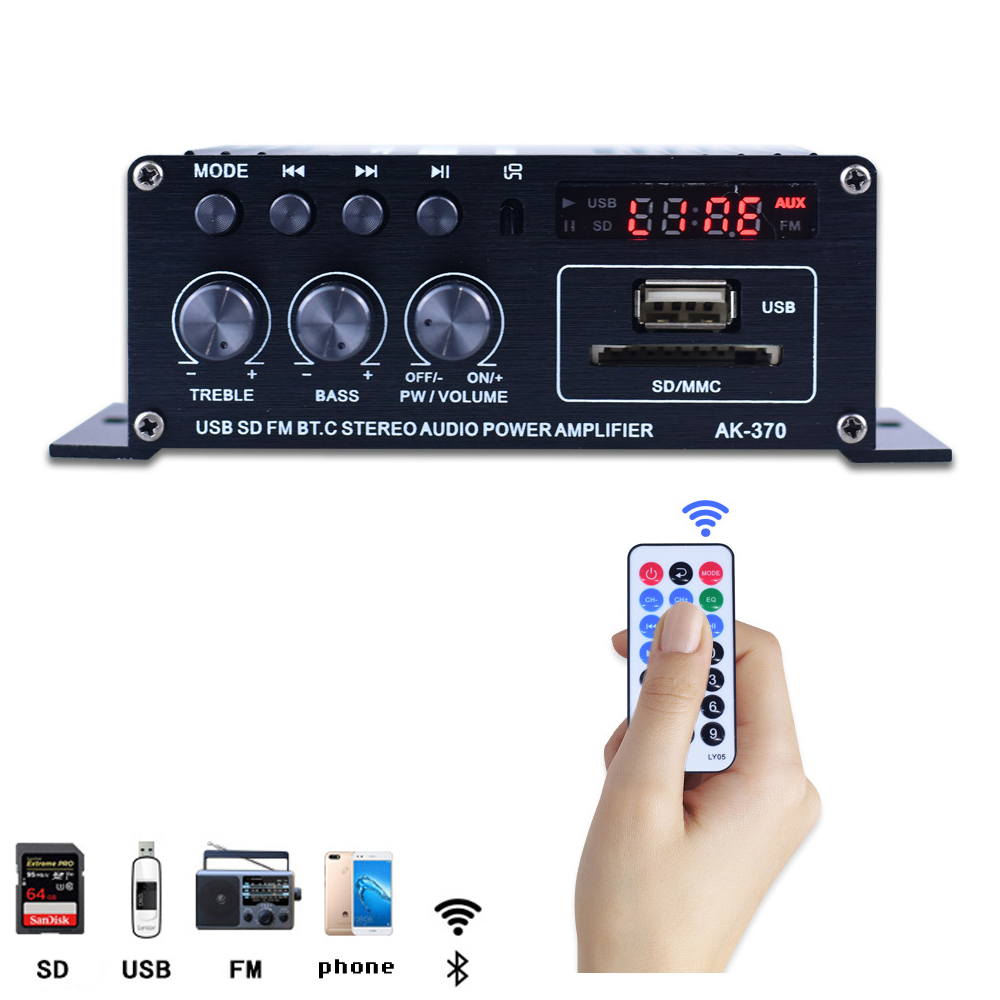 ✔Совместим с 2 динамиками номинальной мощности 40 Вт, 4-16 Ом. Поставляется с пультом дистанционного управления для удаленной настройки звука, может читать U-диск и карту памяти, подключи и работай.