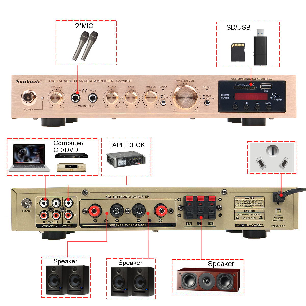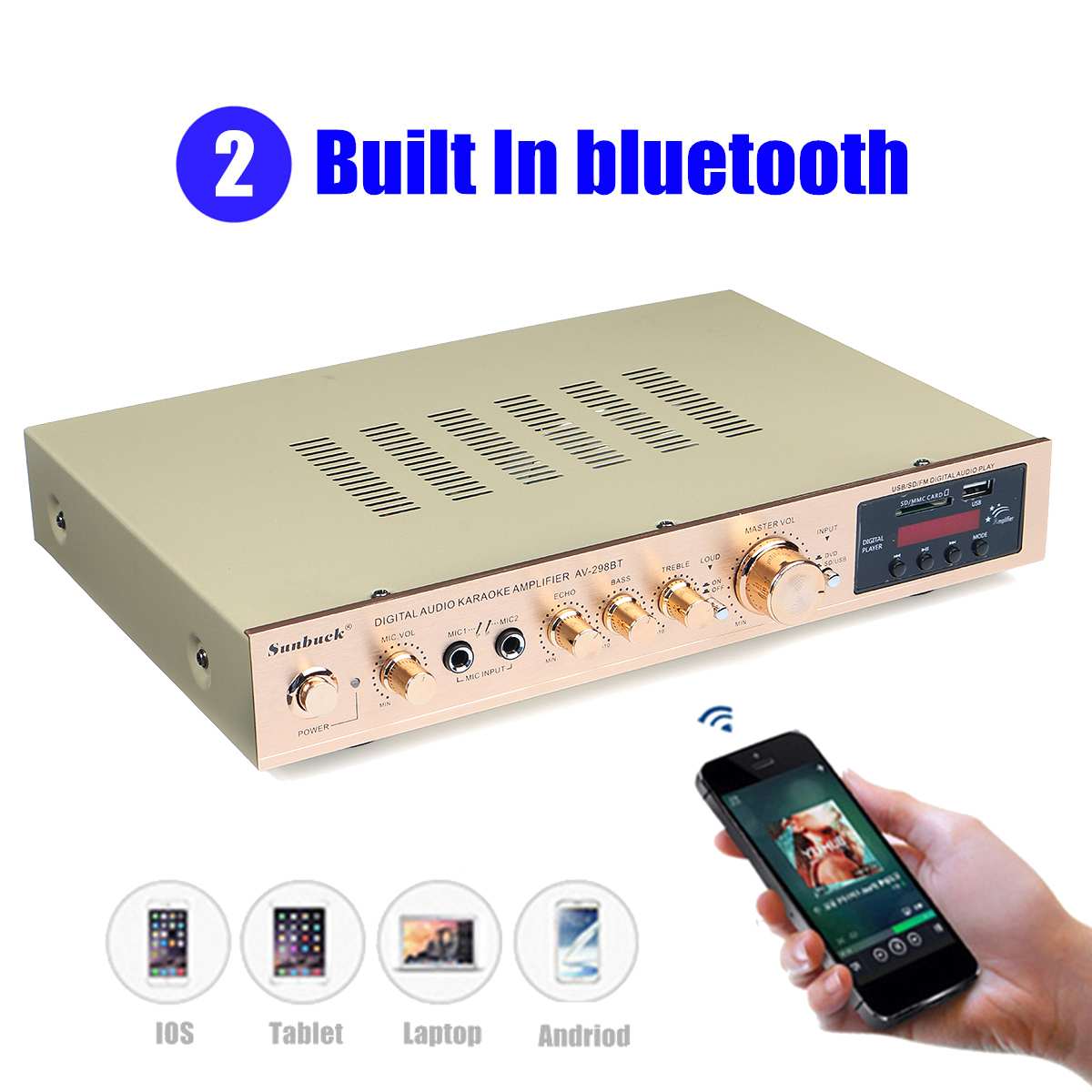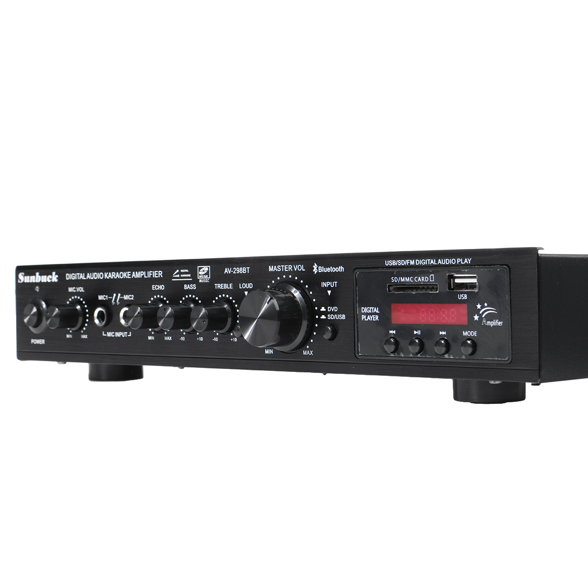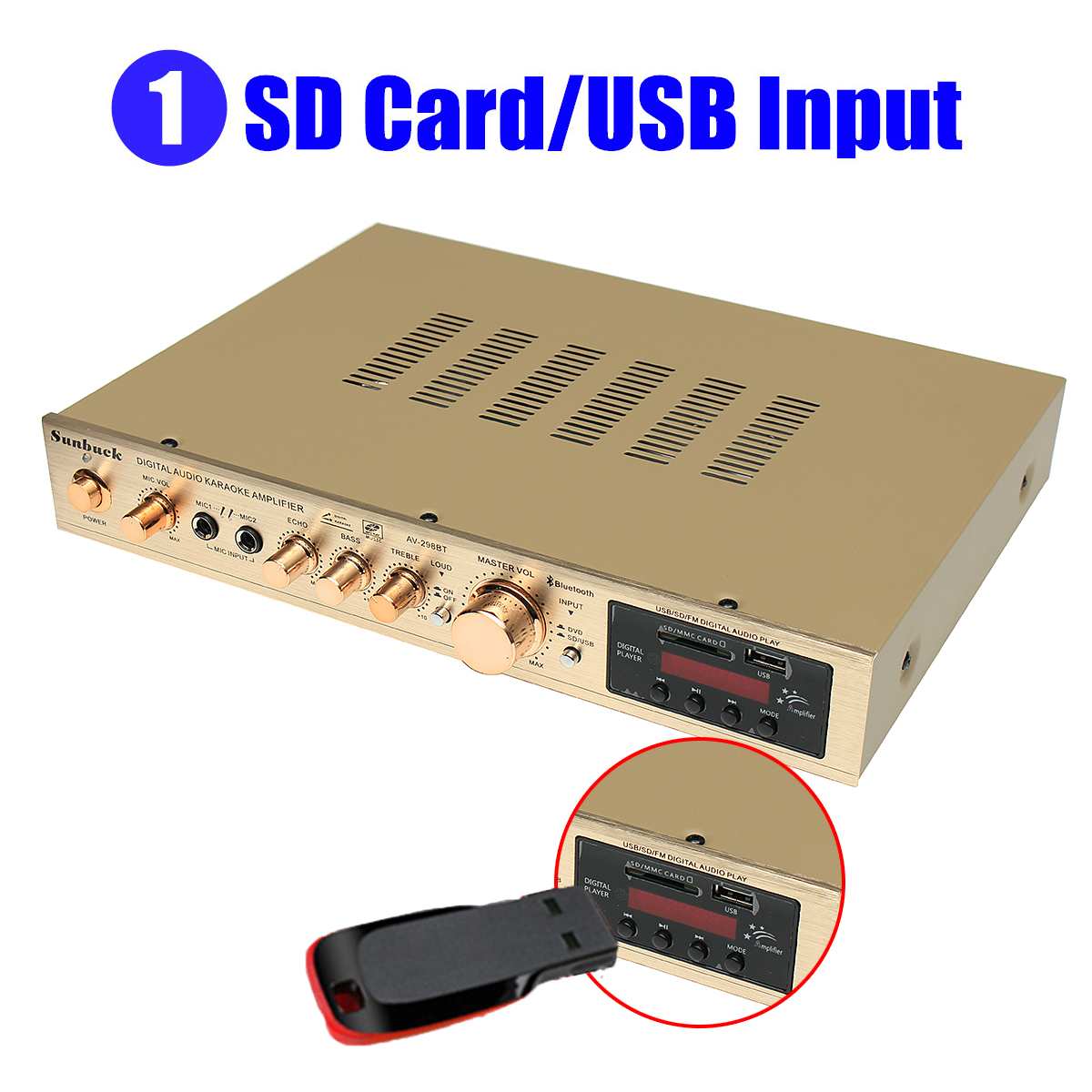 -Двойной микрофонный вход, с 2 микрофонными входами, с регулировкой реверберации микрофона.