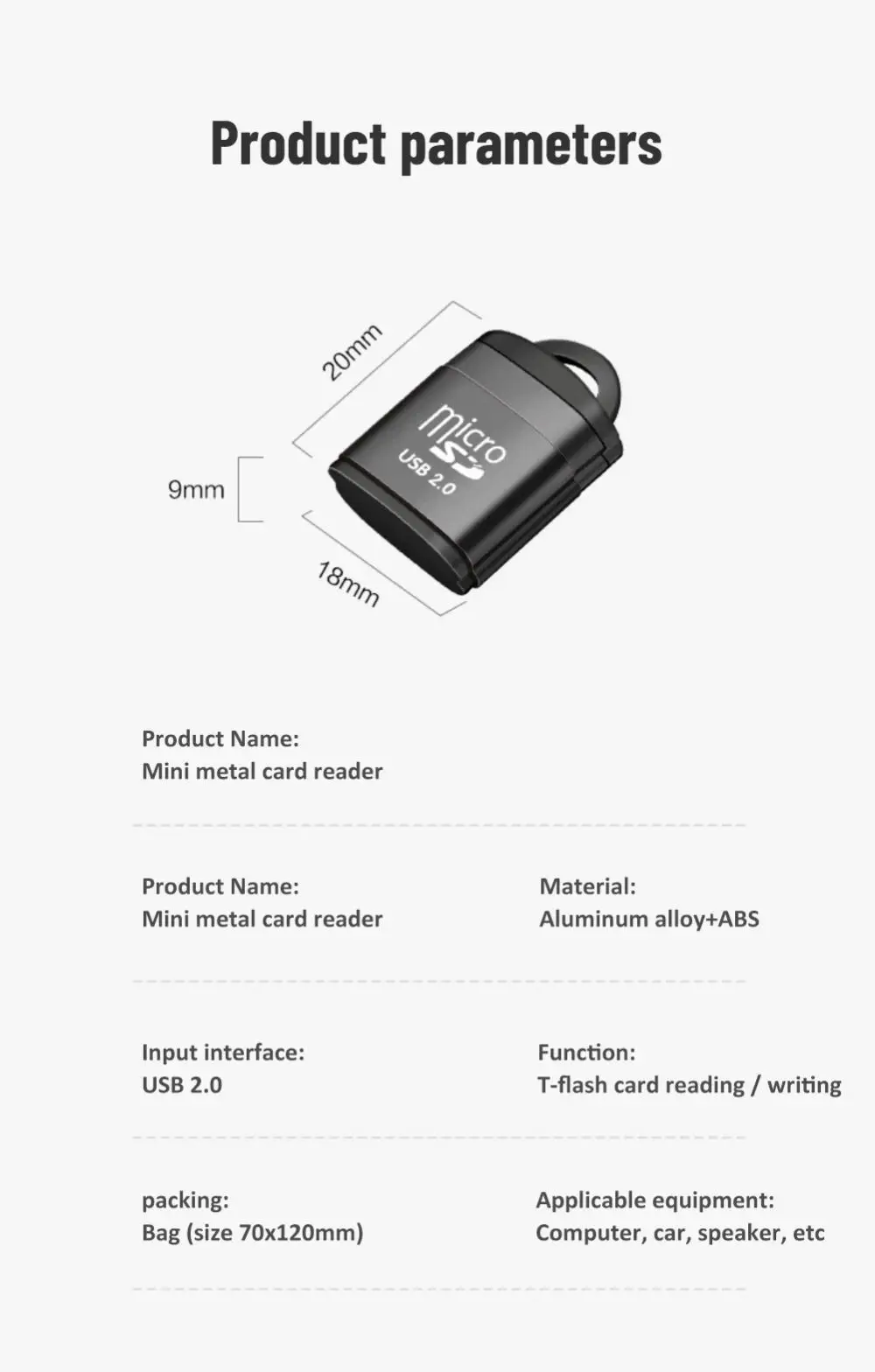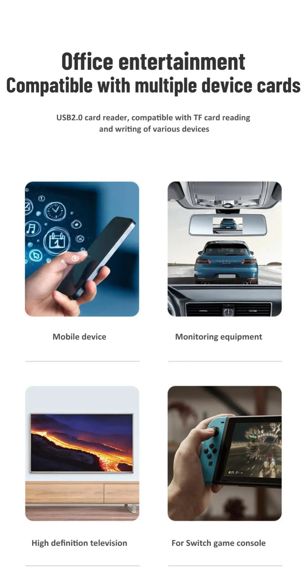 2. Этот USB 2,0 кард-ридер для телефона-удобный инструмент, который позволяет вам НАПРЯМУЮ редактировать файлы изображений и другие данные в tf-карте, не перемещая файлы на компьютере.