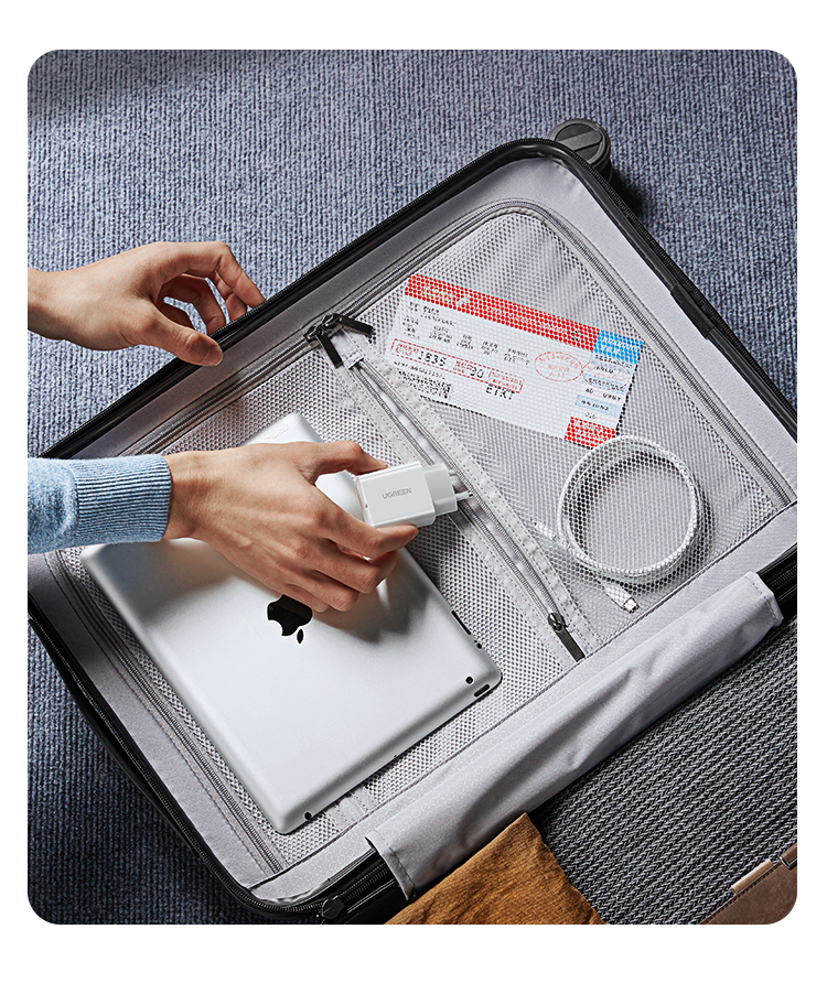 Легкий и компактный дизайн, он не зажмет другие порты на розетке, у вас будет доступ к быстрой зарядке, куда бы вы ни отправились.