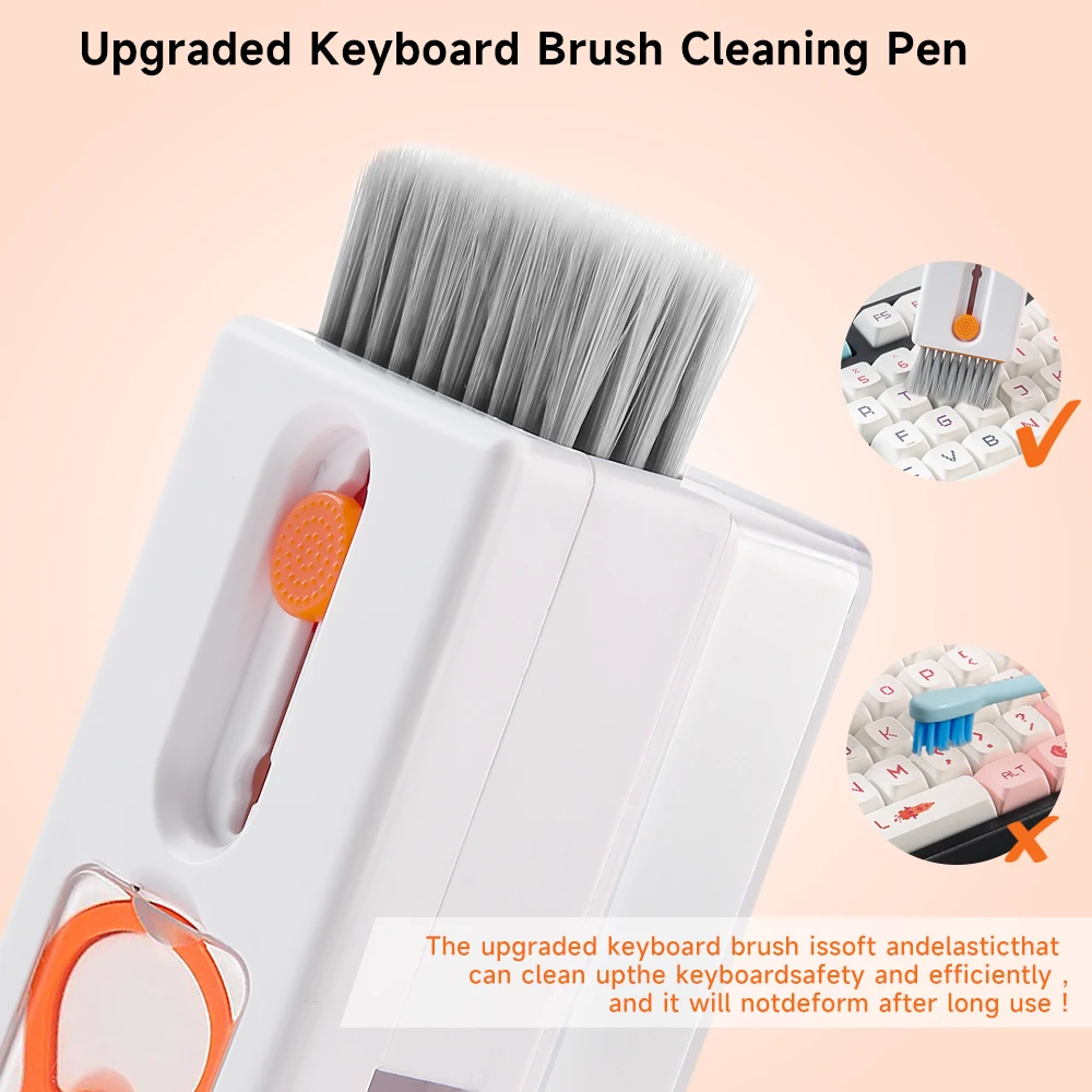 5. Мягкий материал: щётка для чистки клавиатуры изготовлен из высококачественного АБС-материала, не имеет специфического запаха и долговечности. Мягкая нейлоновая кисть не повредит клавиатуру, с умеренной твердостью и хорошей эластичностью, легко очищает клавиатуру.