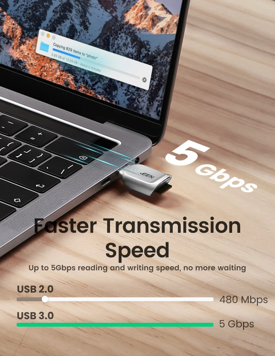 Устройство для чтения карт UGREEN, адаптер для чтения карт памяти Micro SD/TF/OTG, для ноутбуков, ПК, планшетов, телефонов, Windows, MacOS, USB 3,0