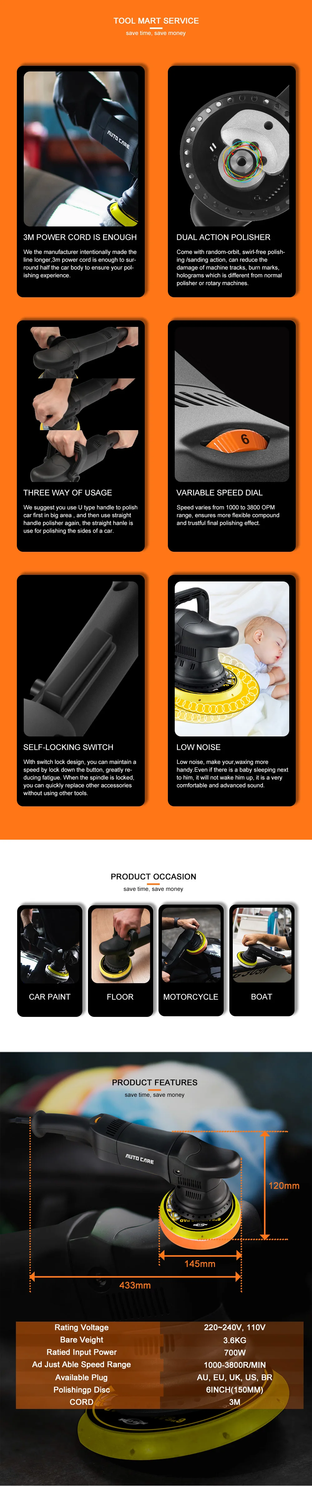 Устройство для полировки автомобиля, устройство двойного действия диаметром 21 мм, случайная орбитальная шлифовка, длина шнура 3 м, устройство для полировки воском, 6 дюймов