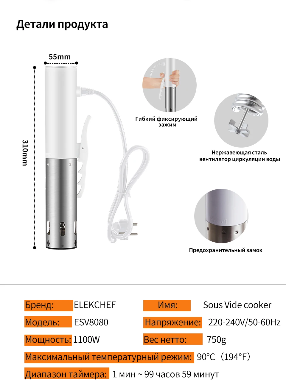 ELEKCHEF Sous Vide Cooker идеально подходят для приготовления различных питательных и полезных деликатесов, как профессиональный шеф-повар!