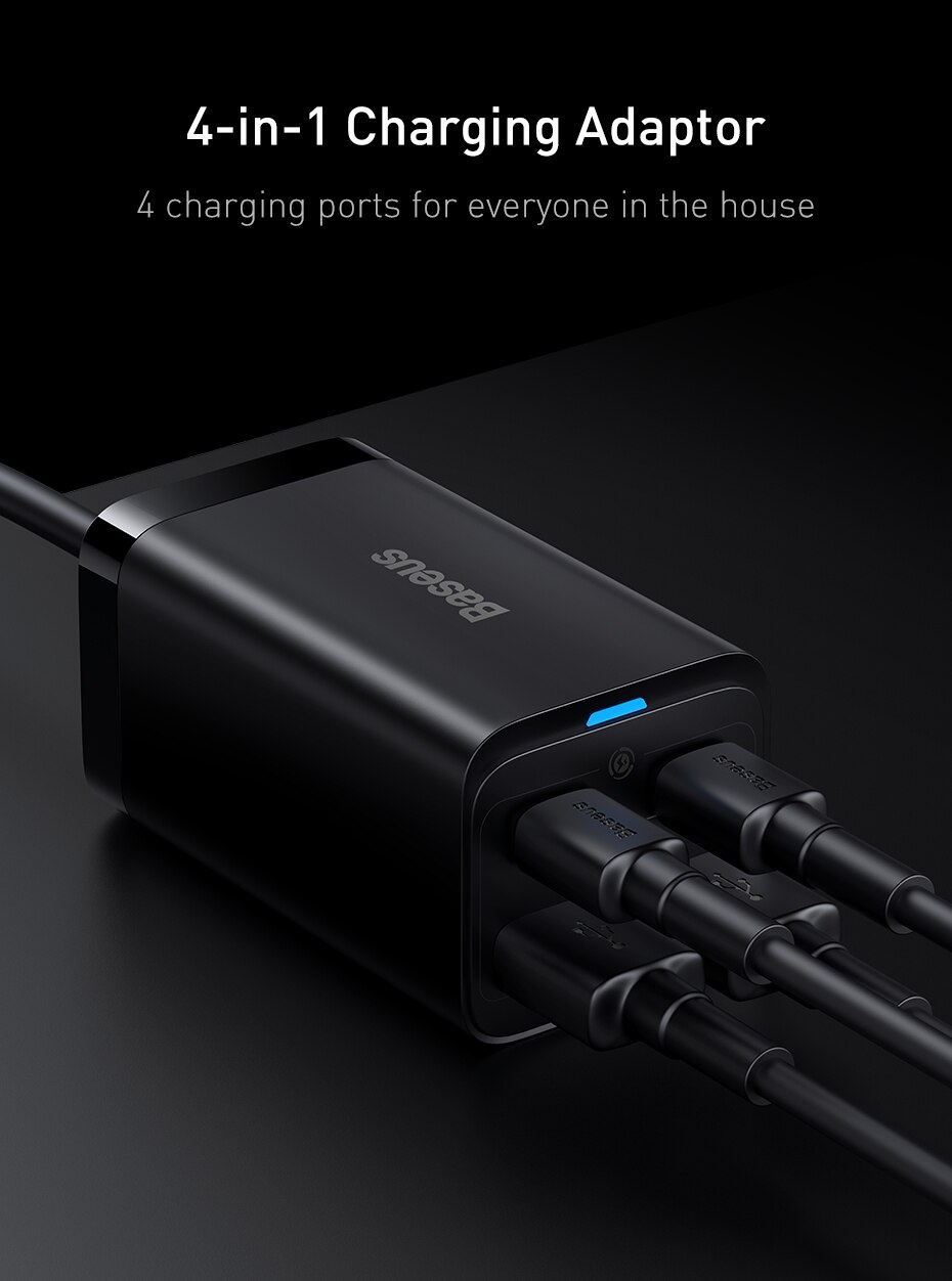 Устройство зарядное сетевое Baseus, 65 Вт, 4 в 1, для iPhone 15 14 13 Pro Max Xiaomi Samsung