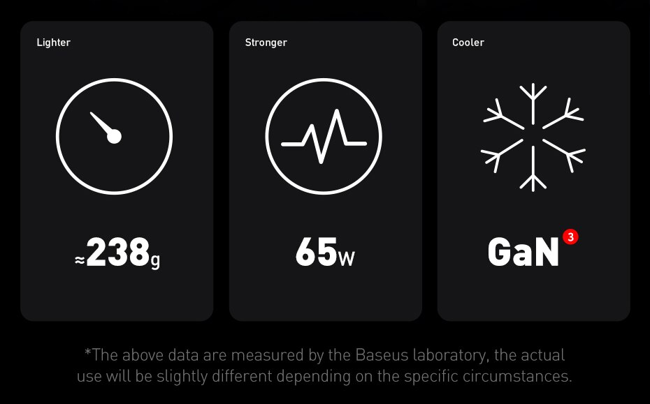 • Быстрая зарядка :Благодаря максимальной выходной мощности 65 Вт и поддержке Huawei Quick Charge это зарядное устройство может быстро заряжать ваши устройства.