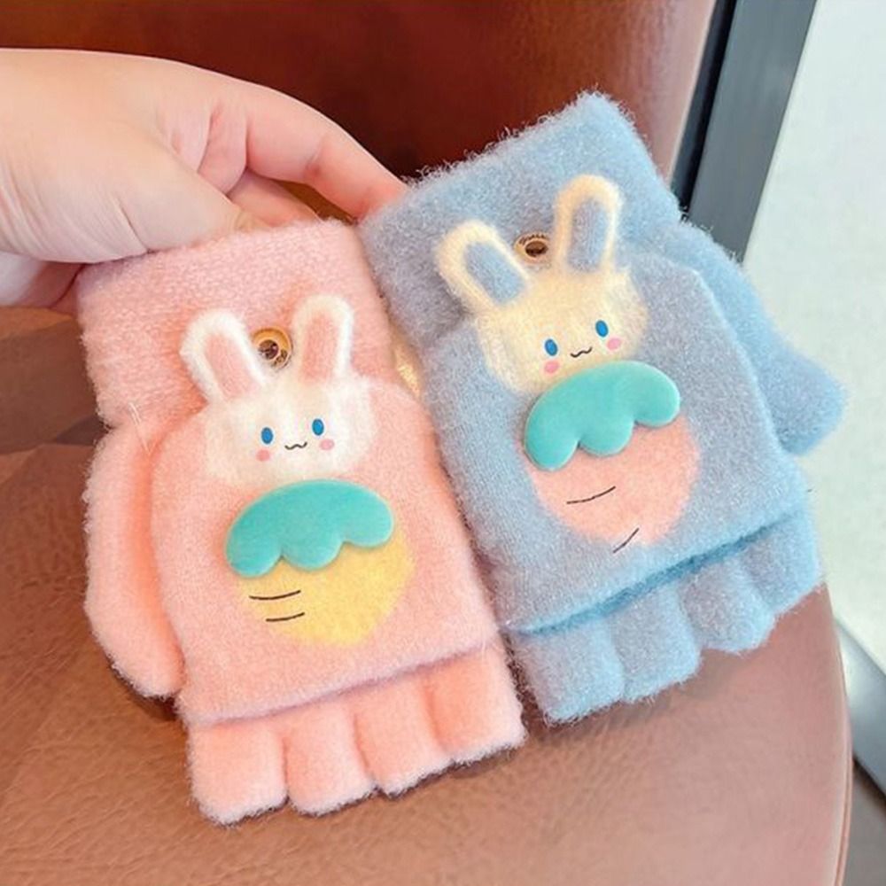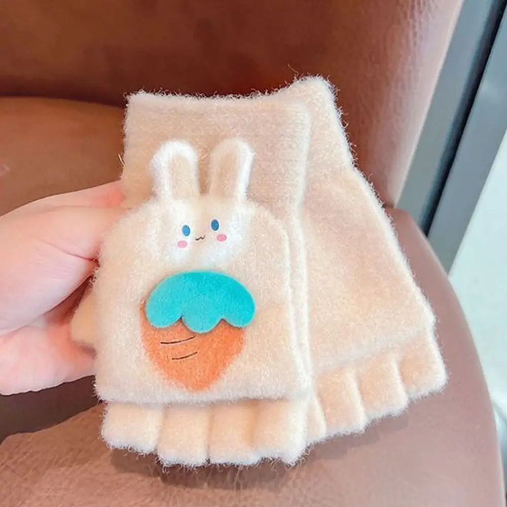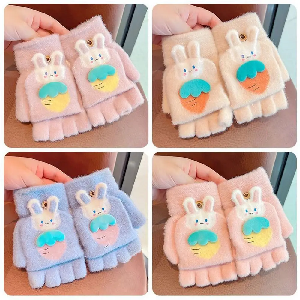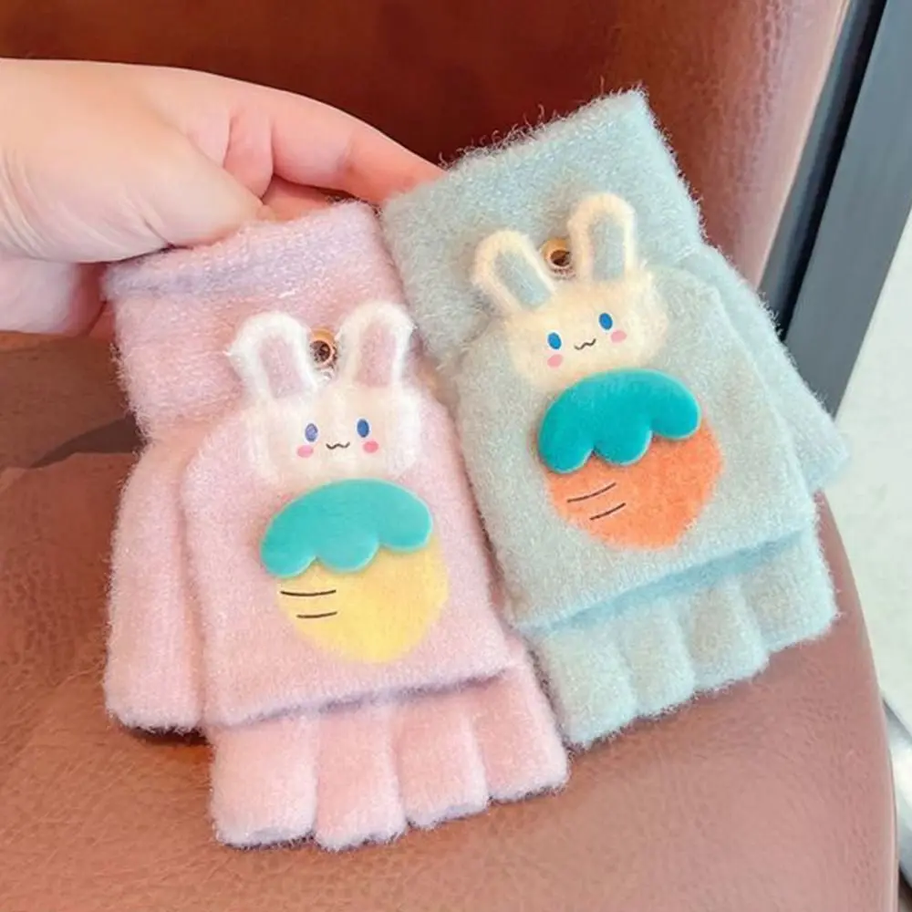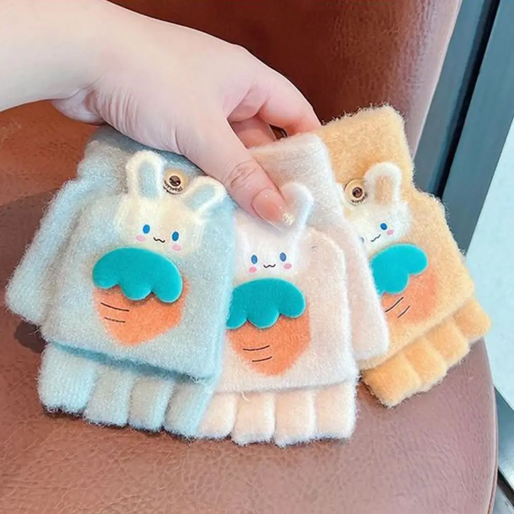 Утолщенные милые осенне-зимние вязаные перчатки с открытыми пальцами, теплые перчатки, варежки, перчатки без пальцев