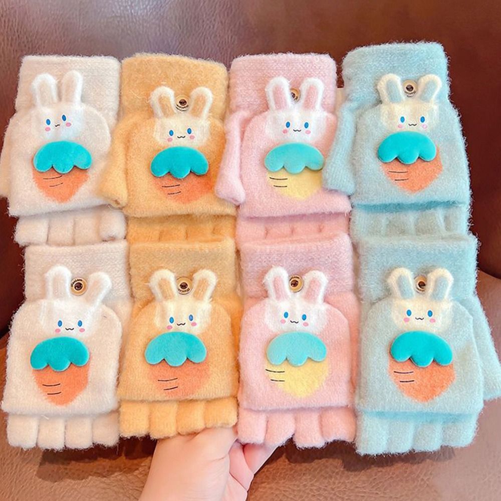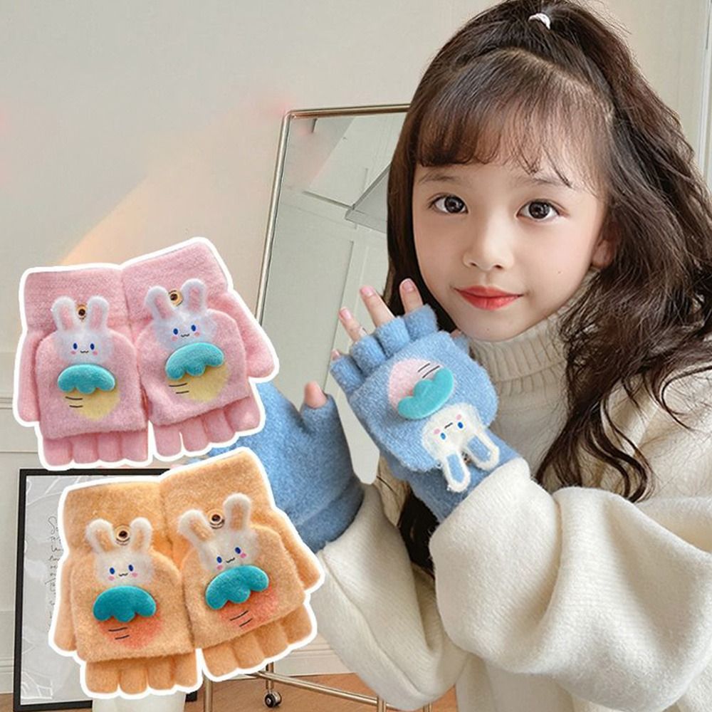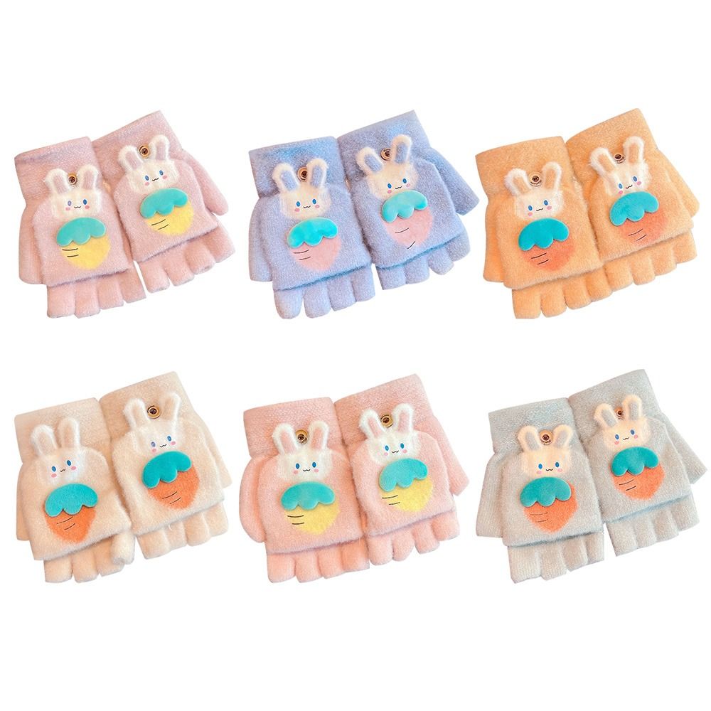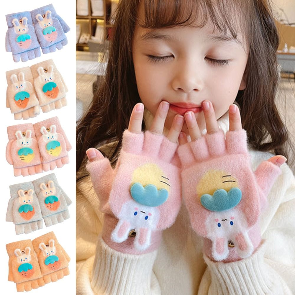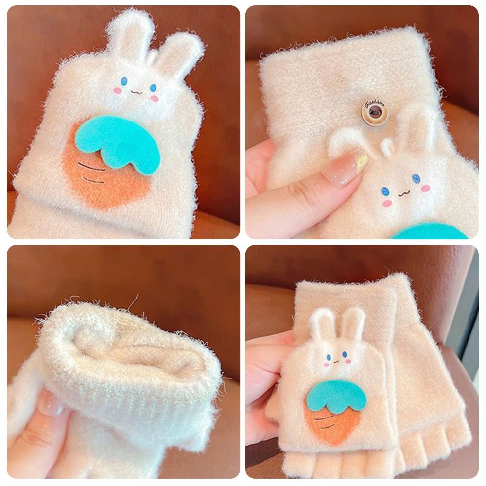 Утолщенные милые осенне-зимние вязаные перчатки с открытыми пальцами, теплые перчатки, варежки, перчатки без пальцев
