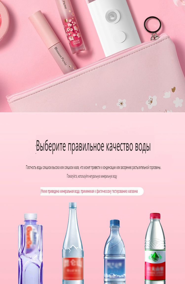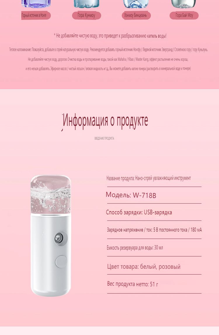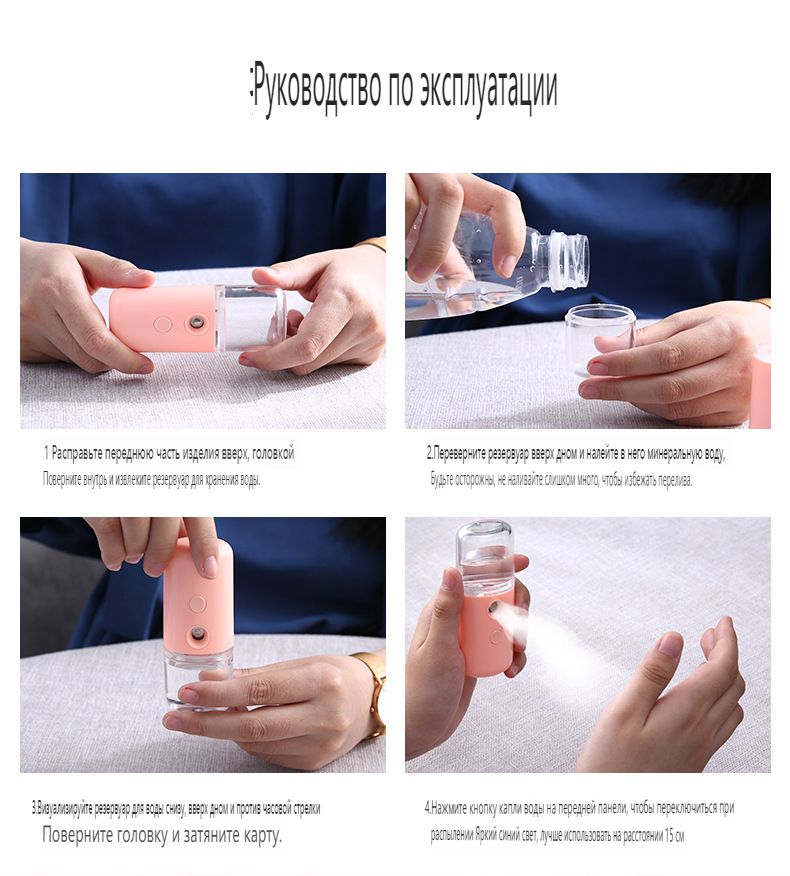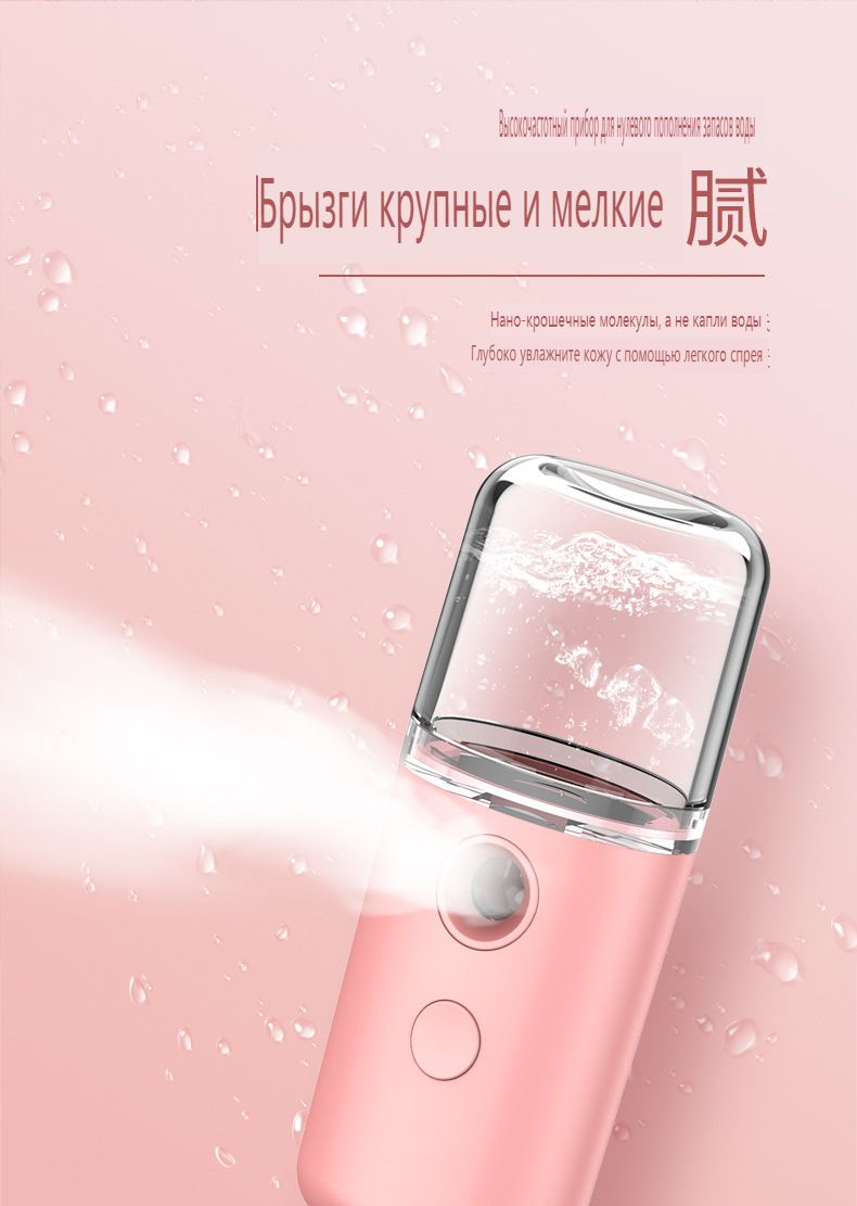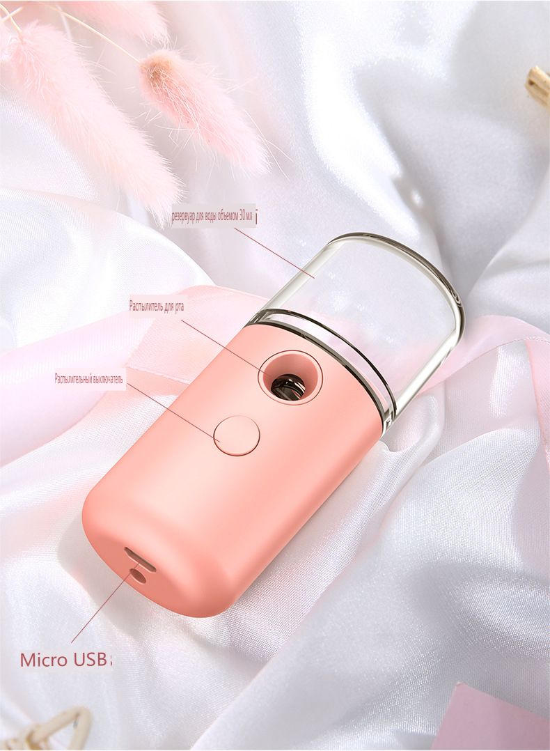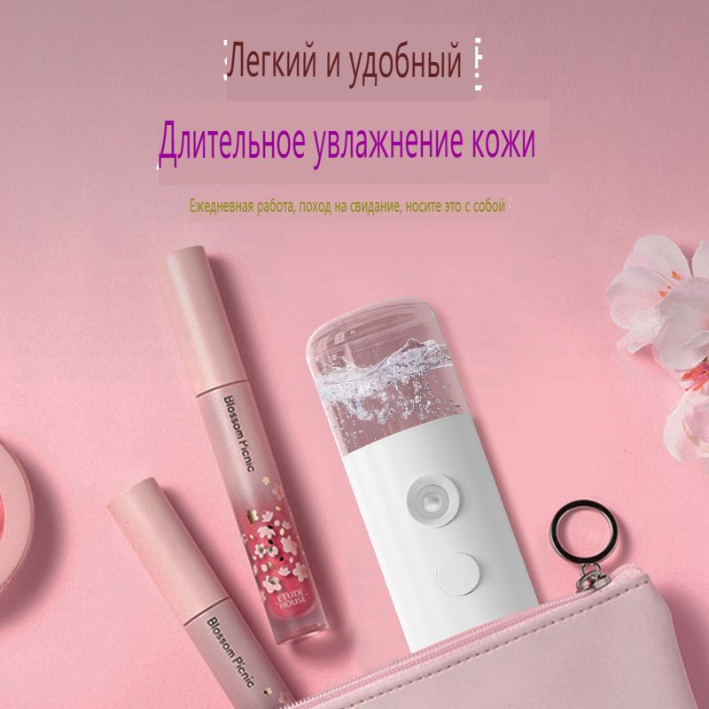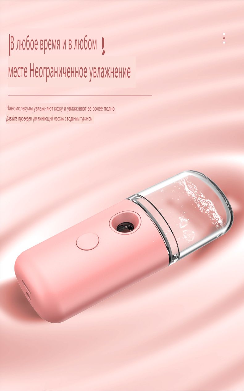 Описание: Позаботьтесь о здоровье Вашей кожи вместе с портативным увлажнителем для лица. Мини увлажнитель позволит Вам увлажнить кожу в любых условиях. Благодаря своим компактным размерам освежитель для лица поместится в любую сумочку. Распылитель для лица преобразует воду в легкую дымку, которая легко ложится на кожу, не повреждая при этом макияж. Он станет Вашим надежным помощником в помещениях с сухим воздухом, во время длительных переездов или перелетов, в офисе с работающим кондиционером или отопительными приборами. Используйте вместе с водой активные лосьоны и сыворотки, чтобы насытить кожу полезными веществами и микроэлементами. Его можно поставить на зарядку в любом удобном для Вас месте. Заряжать ультразвуковой нано распылитель для лица нужно полностью очищенным, без воды.USB провод в комплекте. Отличный подарок для Вас и Ваших близких