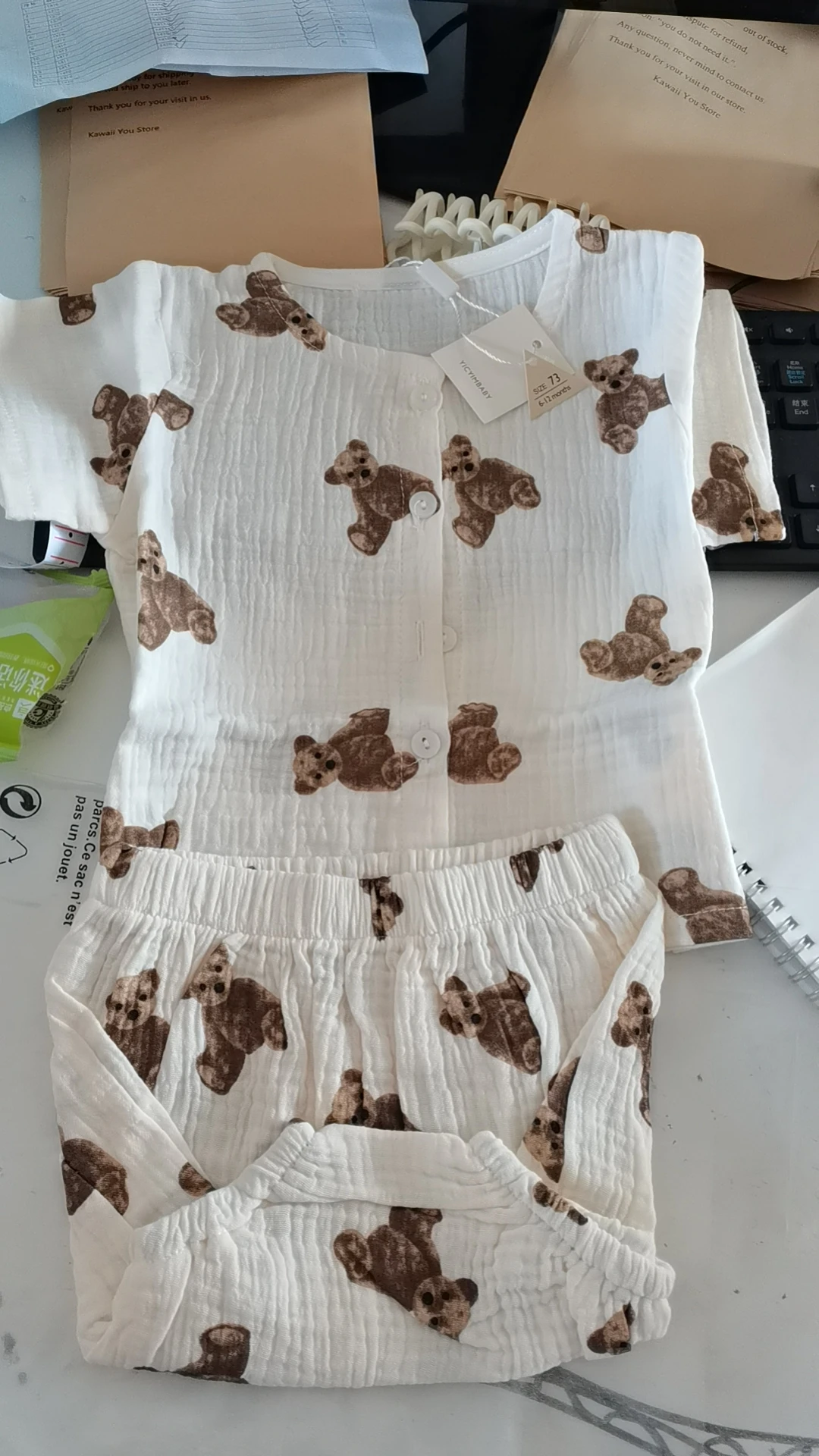 В наличии, Размер 73 см, 9586B, комплект детской одежды, костюм с мультяшным медведем, повседневная одежда для мальчиков из двух предметов, топ + шорты