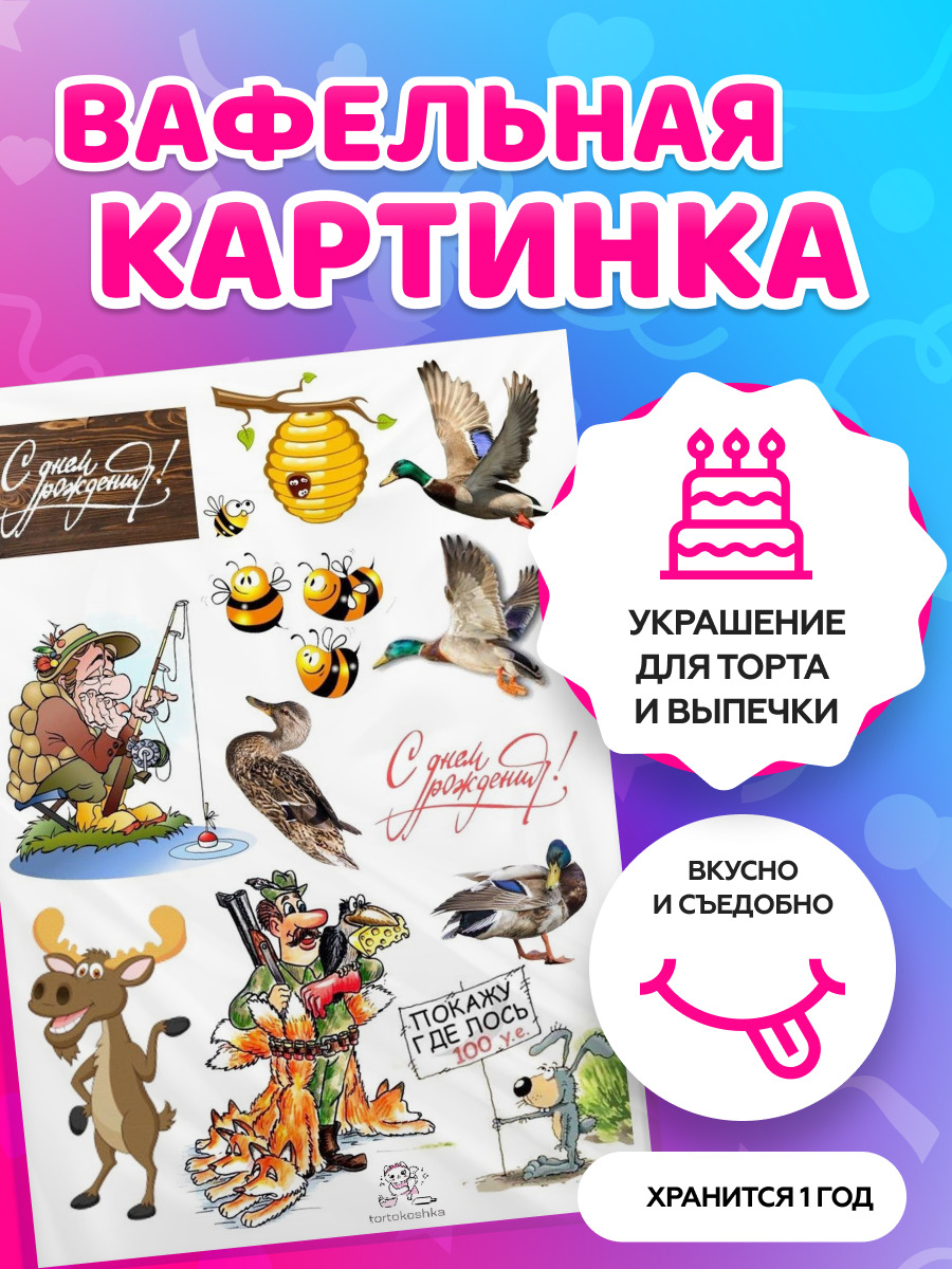 Вафельные картинки для торта на День рождения рыбаку. Декор для торта / съедобная бумага А4