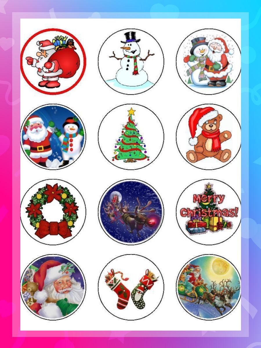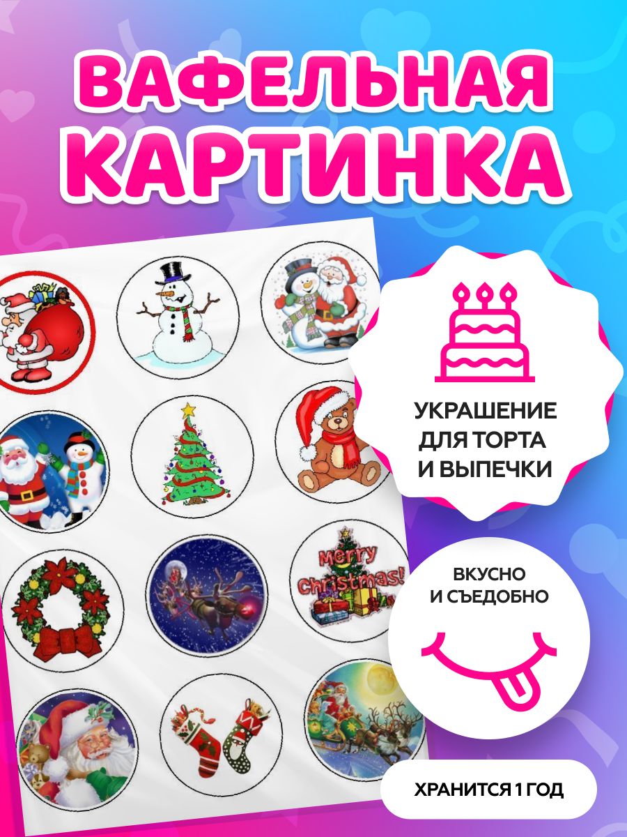 Вафельные картинки для торта на Новый год и Рождество. Декор для торта / съедобная бумага А4