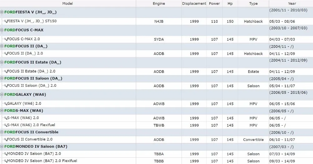 Для FOR-D MONDEO IV 2,0 Flexifuel 1999 107 4 Хэтчбек 2009-