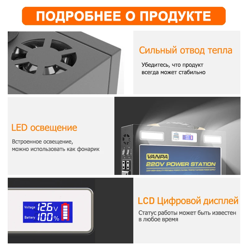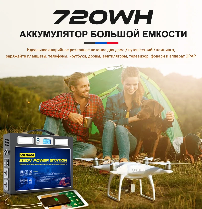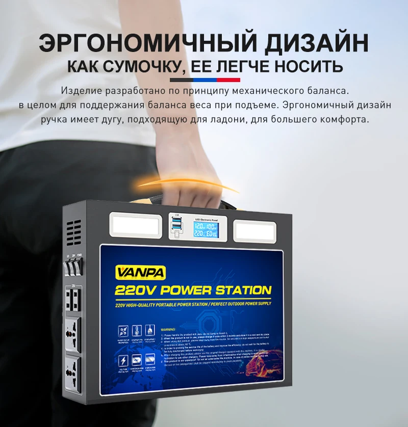 VANPA Многофункциональный портативный источник питания 220В 1000Вт зарядное Открытый аккумулятор питания аварийного генератора