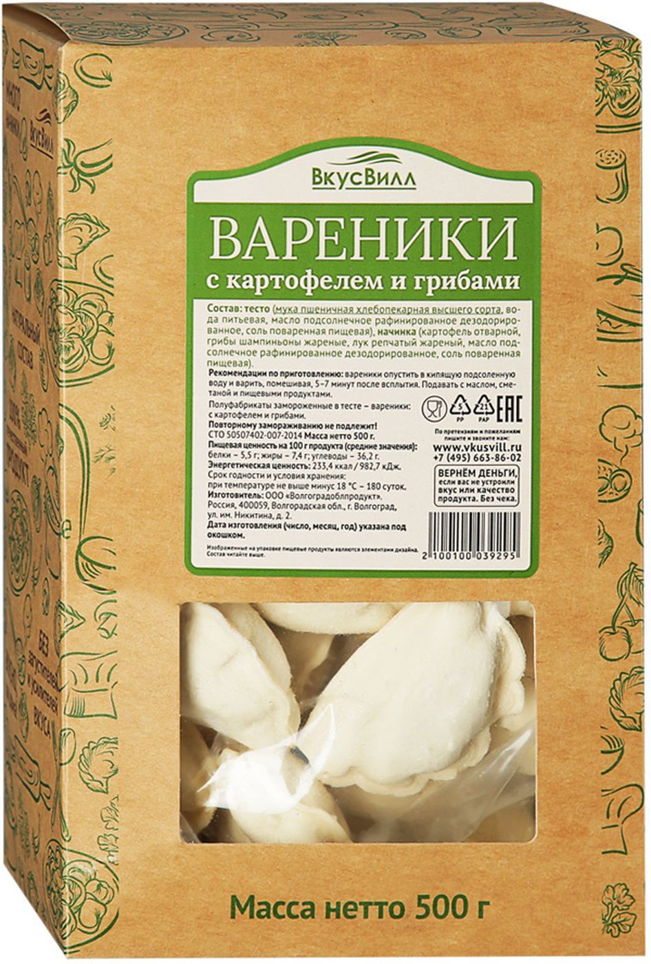 Вареники с картофелем и грибами ВкусВилл, замороженные, 500 г