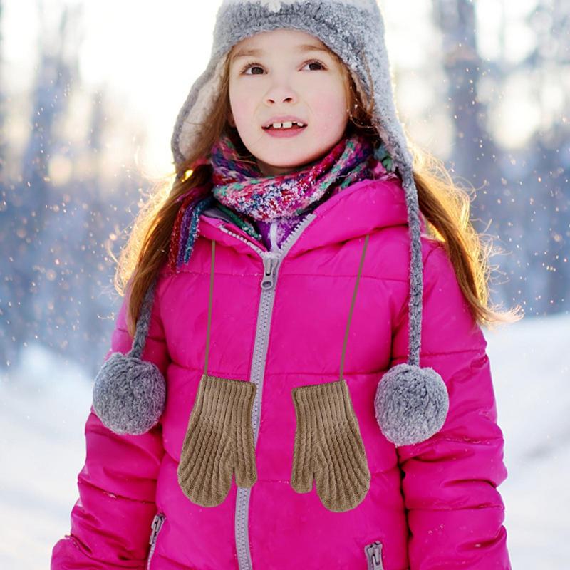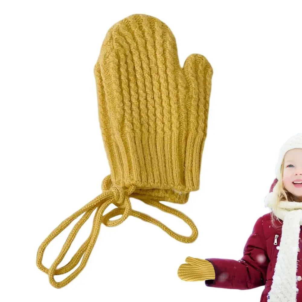 Варежки для малышей, детские вязаные перчатки с подкладкой, Детские теплые перчатки, зимние флисовые вязаные варежки для мальчиков и девочек, для малышей
