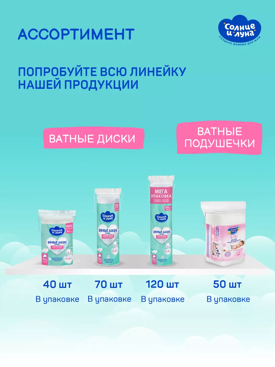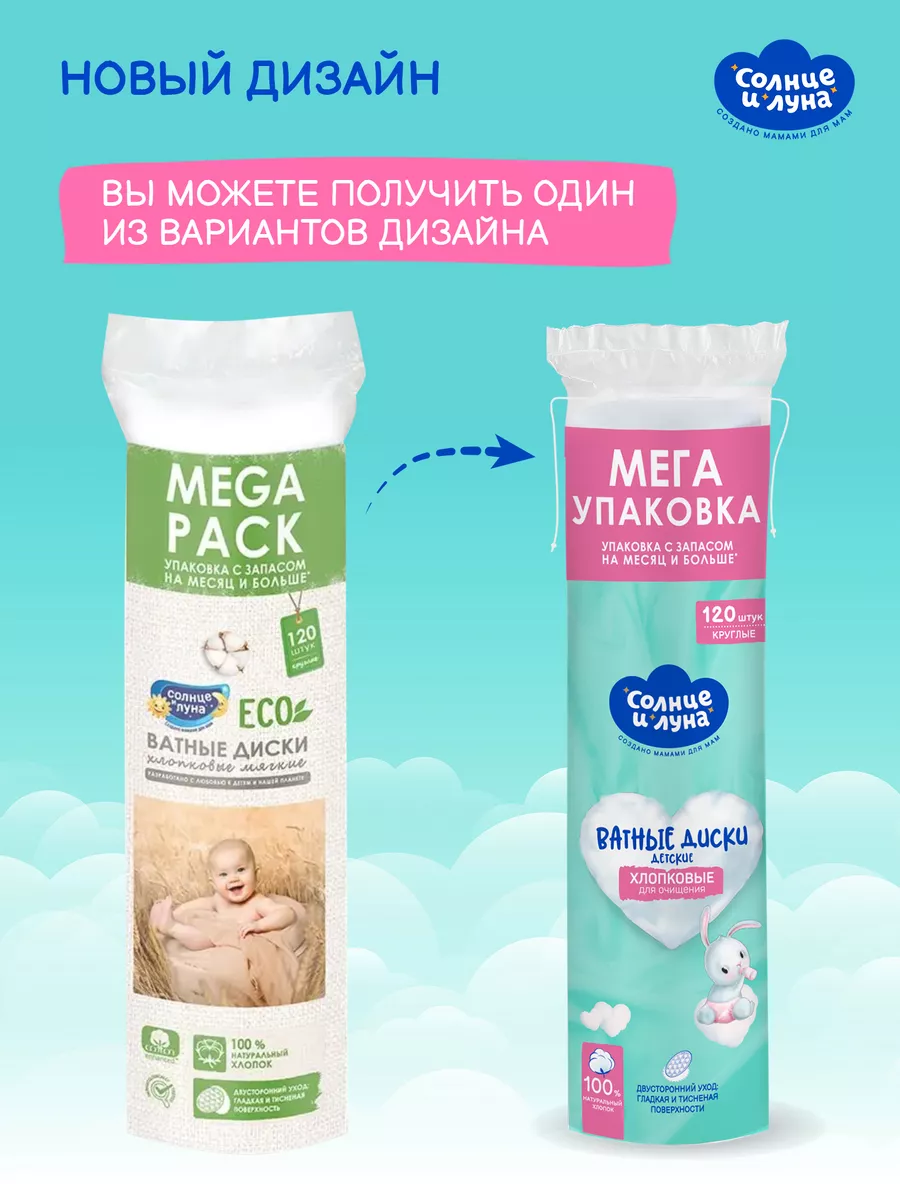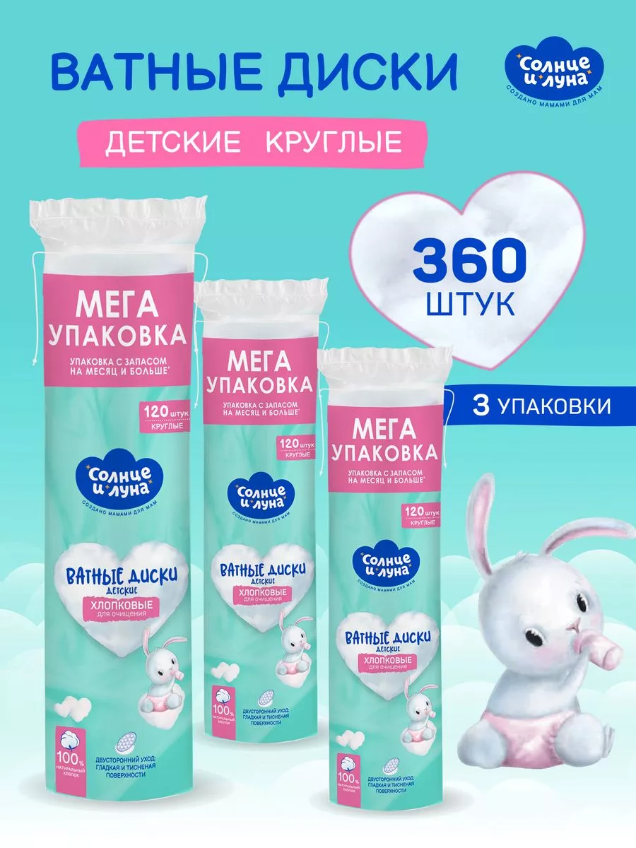 Комплектация 3 упаковки по 120 штук; 360 ватных дисков Солнце и Луна