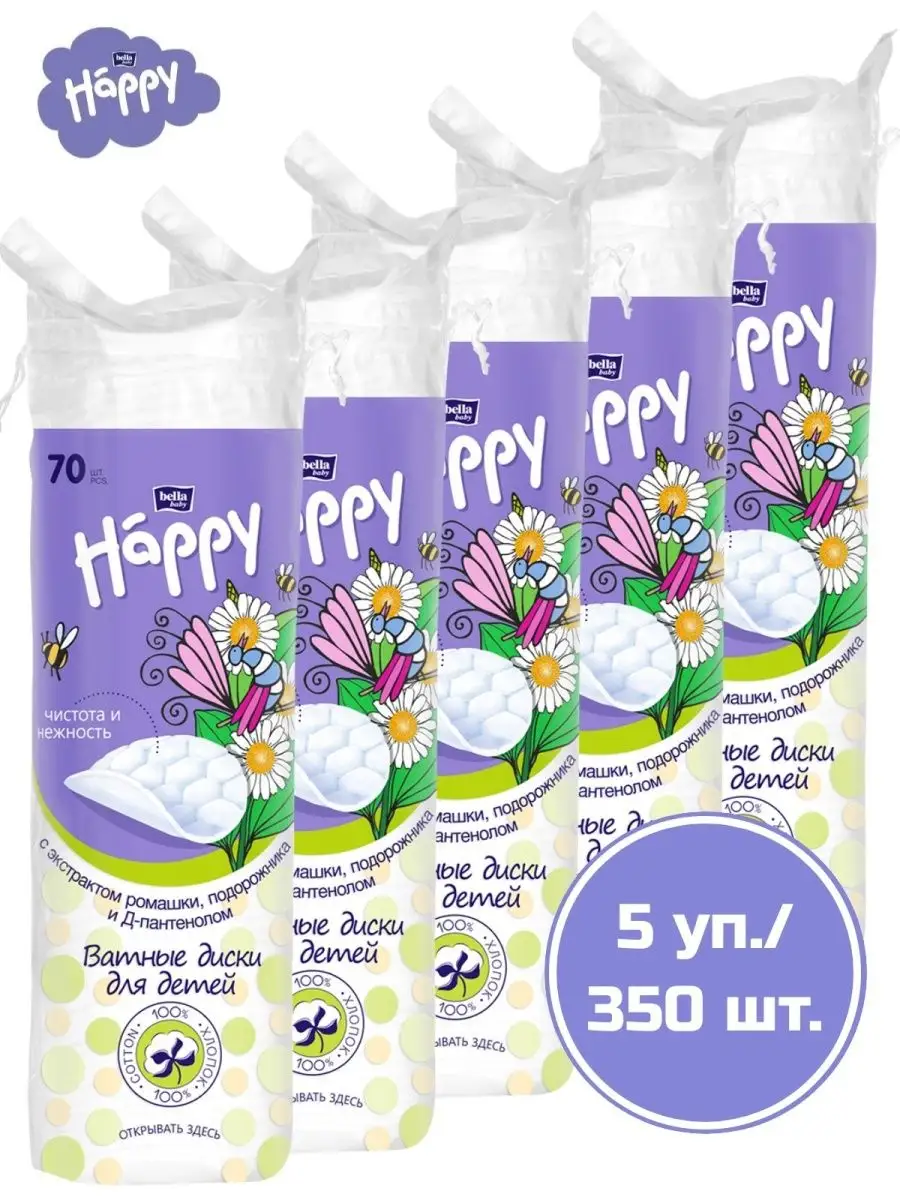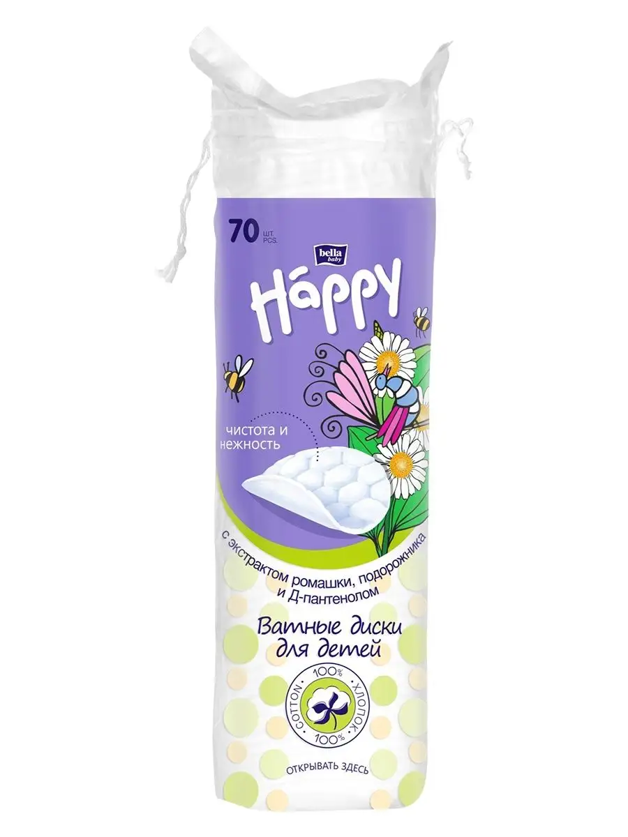 Ватные диски bella baby Happy ромашка, подорожник 70штх5уп