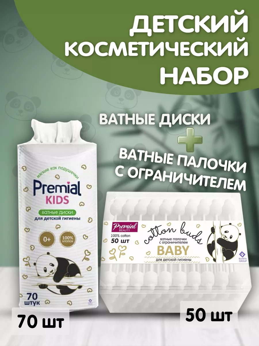 Комплектация ватные палочки с ограничителем 50 штук; ватные диски 70 штук; детский набор в роддом
