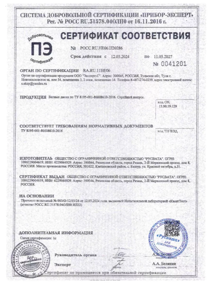 Комплектация Ватные диски 175 шт - 4 упаковки