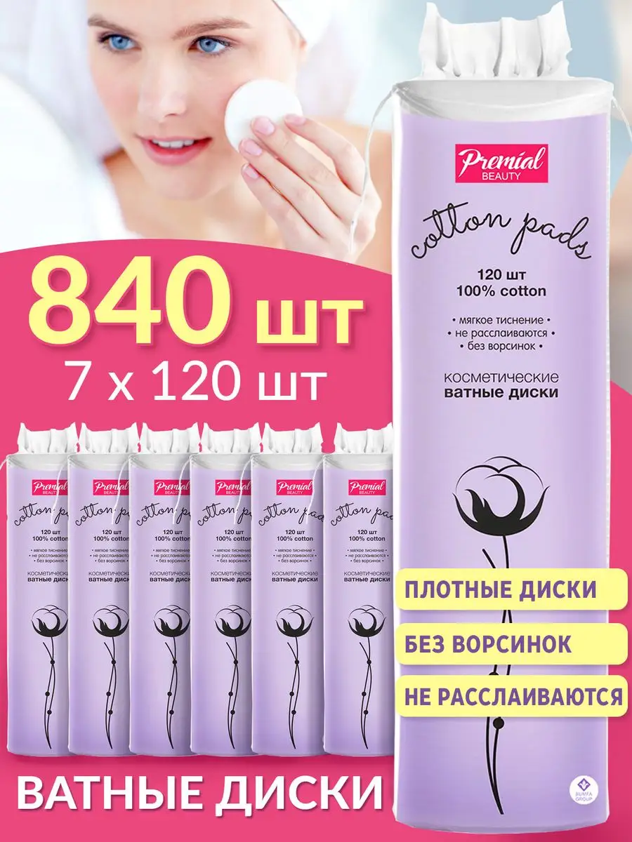 Комплектация Ватные диски для лица набор 5 упаковок по 120 штук; ватные диски для снятия макияжа; Ватные диски косметические для очищения кожи; ватные диски прошитые; ватные диски для новорожденных