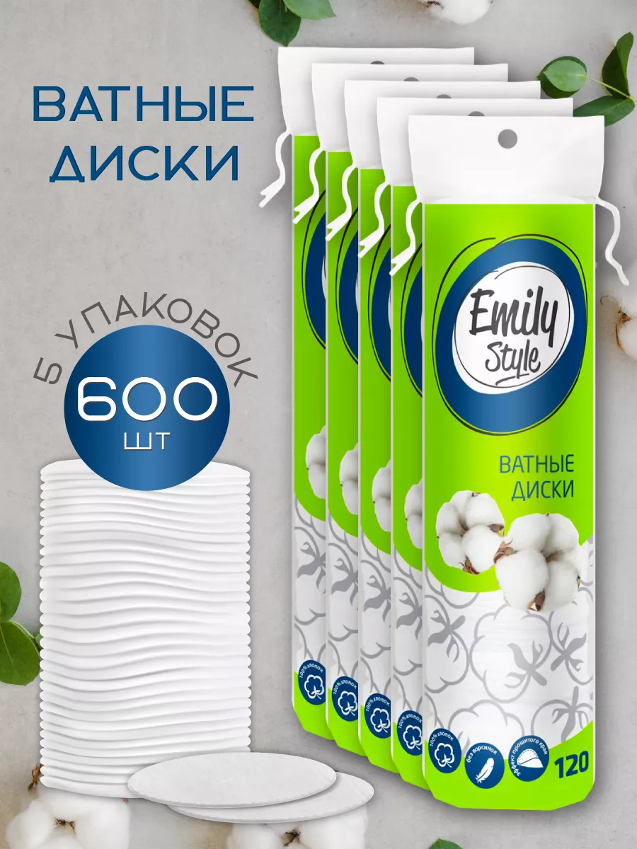 Ватные диски хлопоквые в наборе 5 уп. по 120 шт. ( 600 шт)
