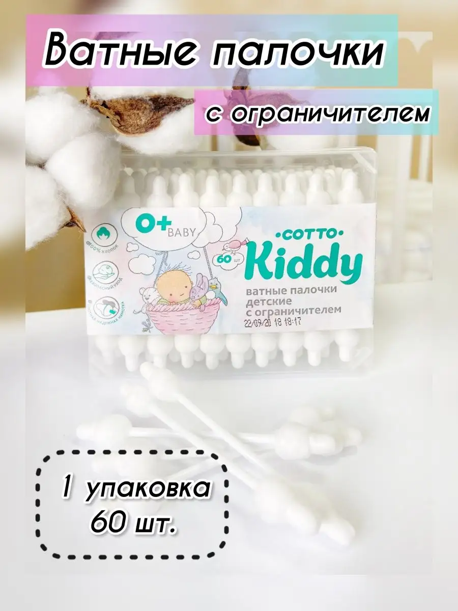 Комплектация Упаковка ватных палочек с ограничителем - 60 шт