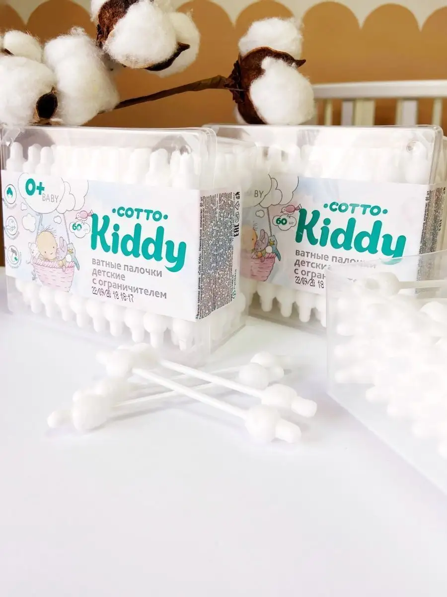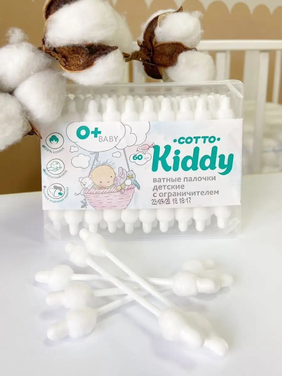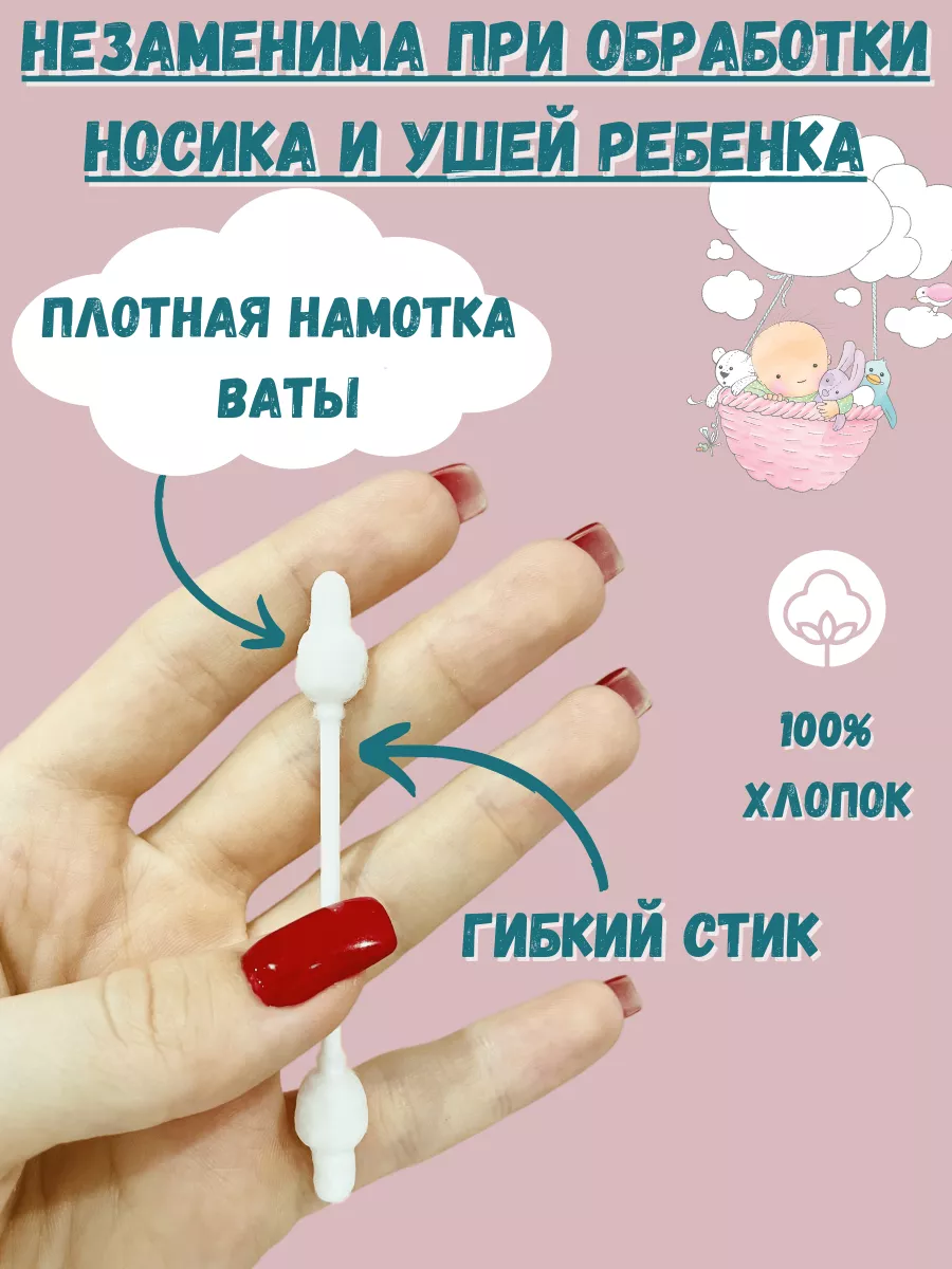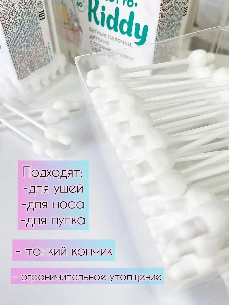 Ватные палочки для новорожденных с ограничителем 60 шт