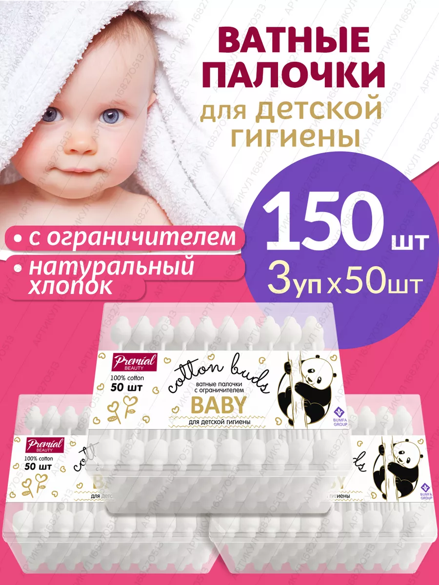 Ватные палочки с ограничителем набор 150шт (3уп х 50шт)