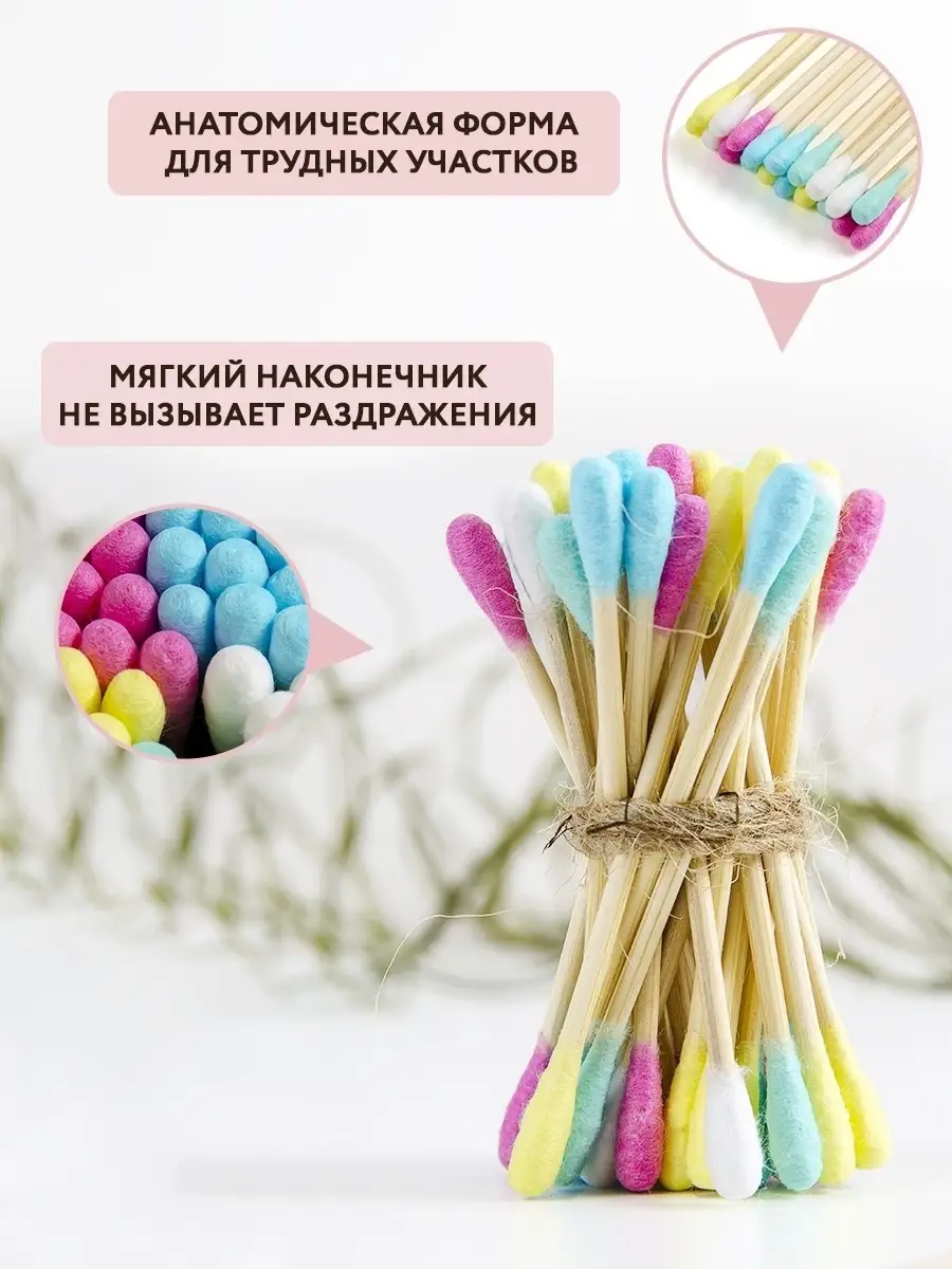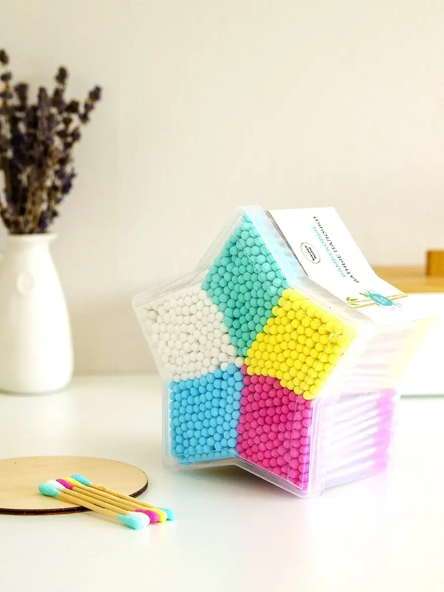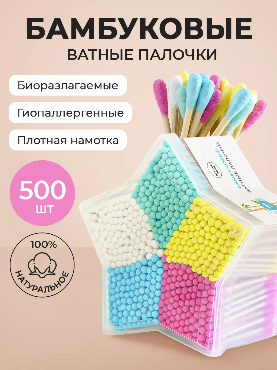 Ватные ушные цветные палочки из бамбука и хлопка, 500 шт.
