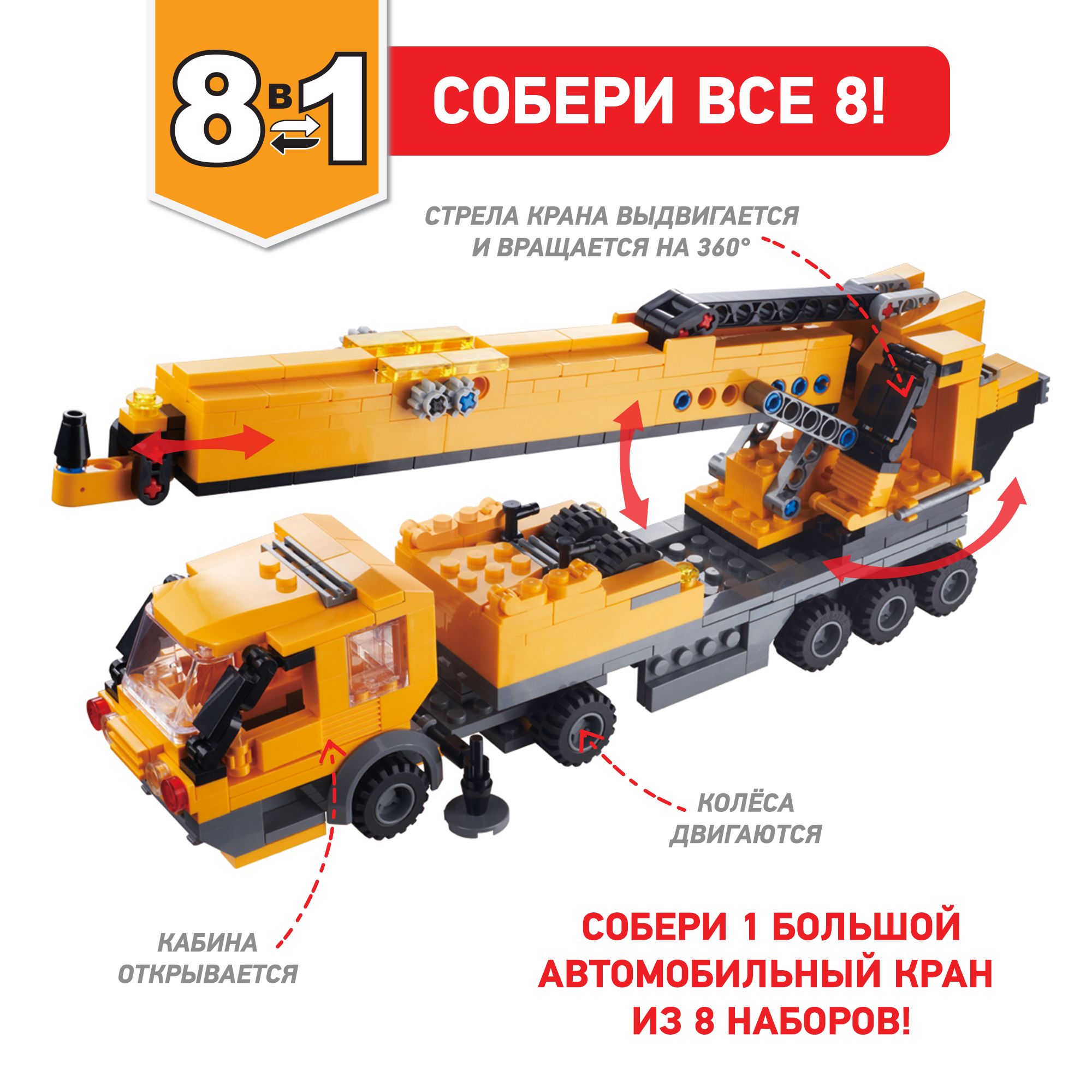 Объедини все 8 наборов Wise Block серии "Строители" и собери большой автомобильный кран!