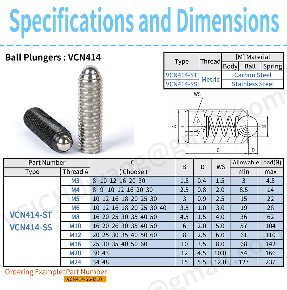 VCN414-SS все Сатиновые стальные Пружинные шариковые поршень и внутренний шестиугольный роликовый шариковый резьбовой болт для позиционирования
