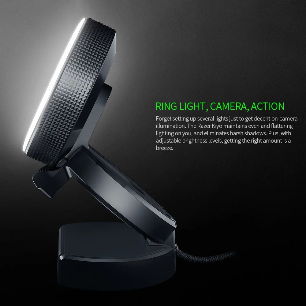 С Razer Kiyo ВАШИ ПОКЛОННИКИ или друзья всегда находятся всего в одном клике. С студийным освещением, он отлично подходит для потоковой передачи и видеозвонков, так что вы можете оставаться на связи с людьми в вашей жизни.