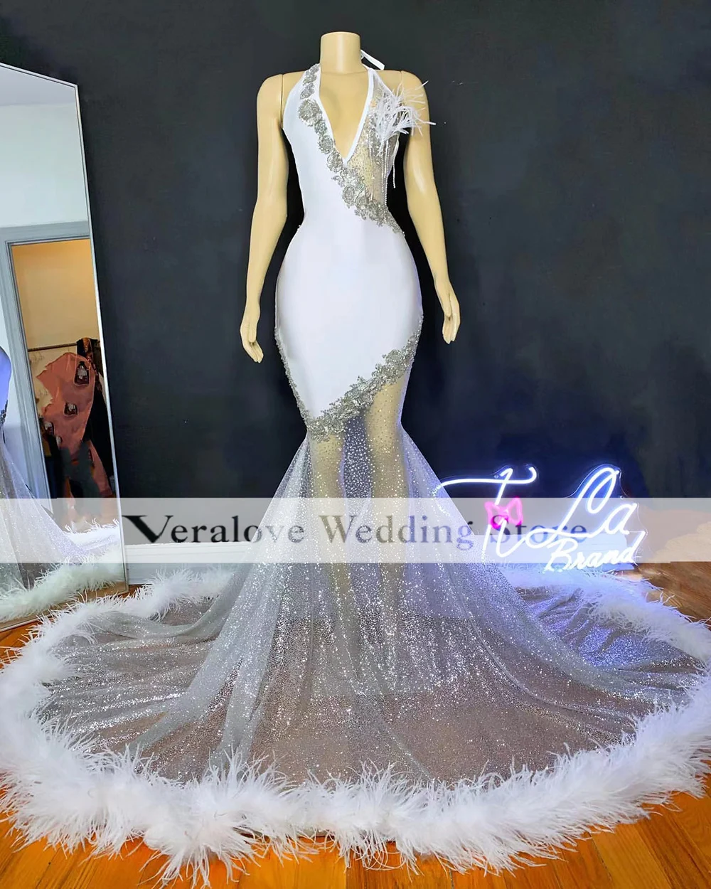 Вечерние платья Sharon Happy 2K23 с воротником-халтером, серебристые блестящие платья для торжественных выпускных вечеринок, одежда для девушек
