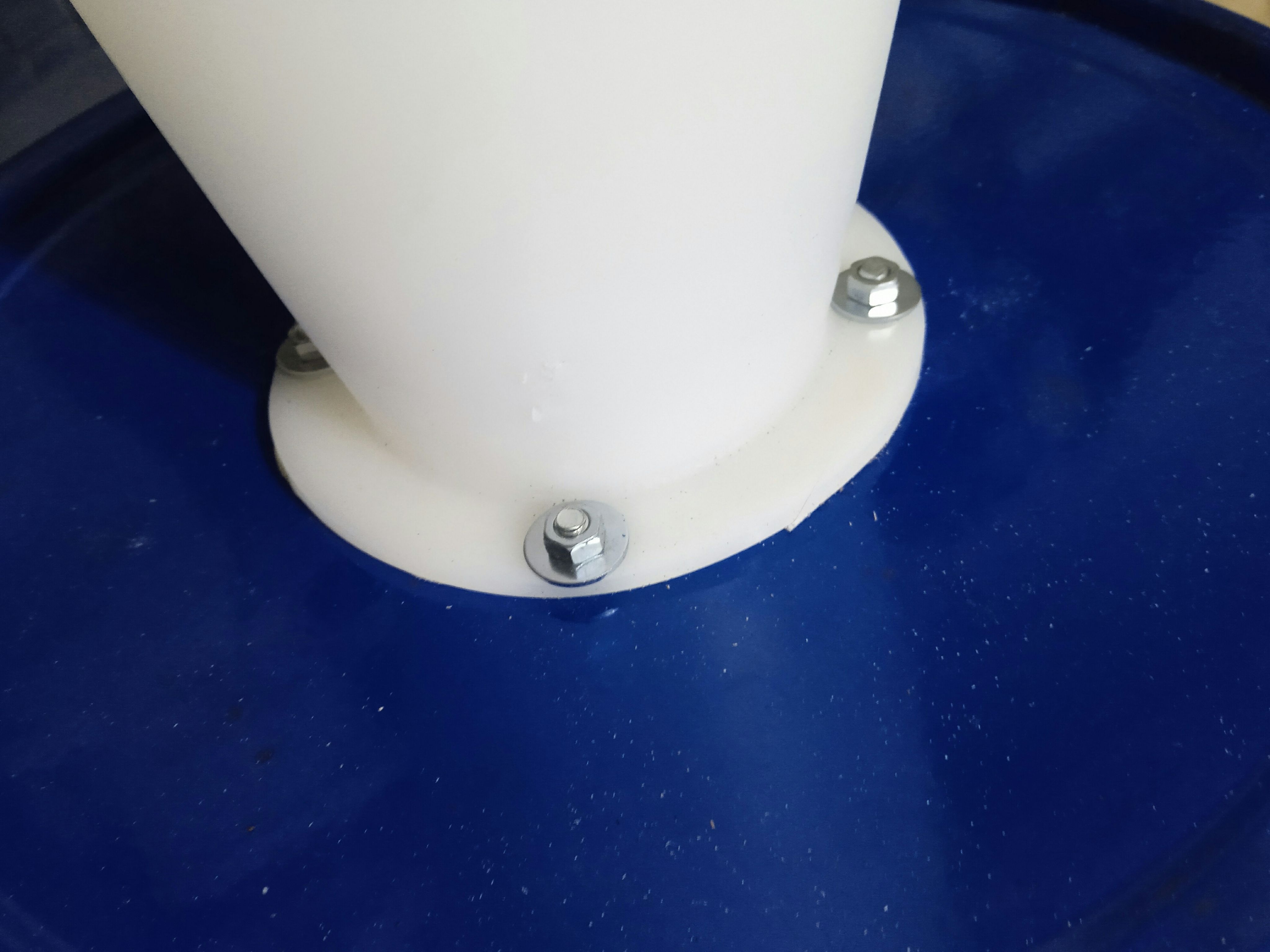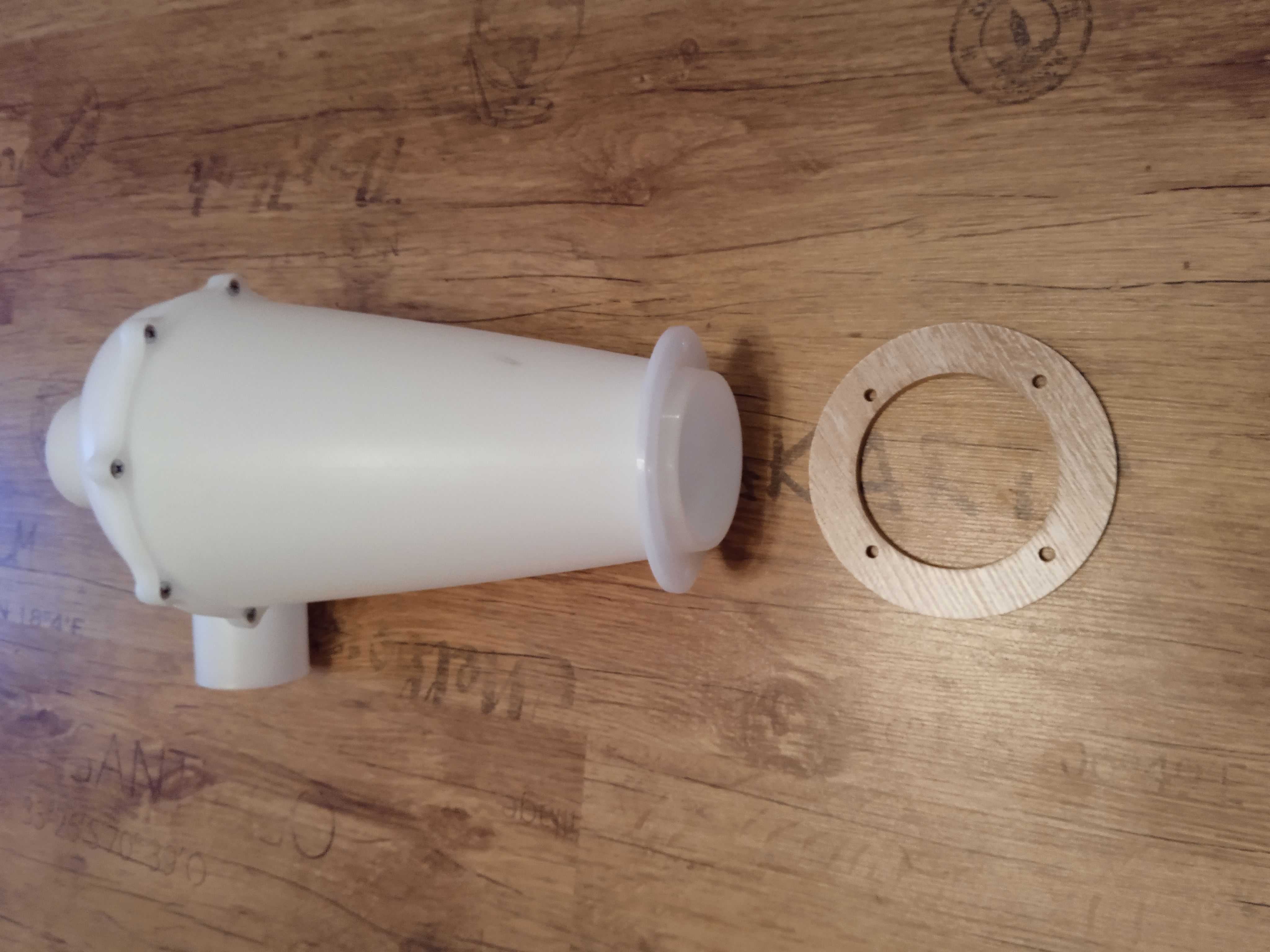 Фланец изготовлен из ламината, не боится многократного смачивания водой, проверено на практике, в сервисах аренды инструмента.