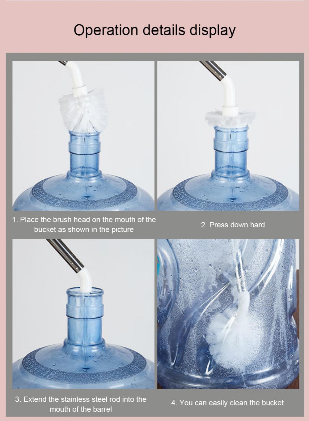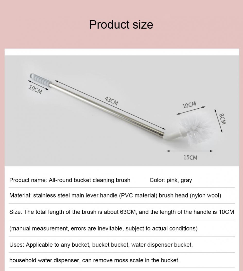Usage: applicable to any bucket, such as barreled bucket, water dispenser bucket and household water dispenser, which can remove the moss and scale in the bucket.
