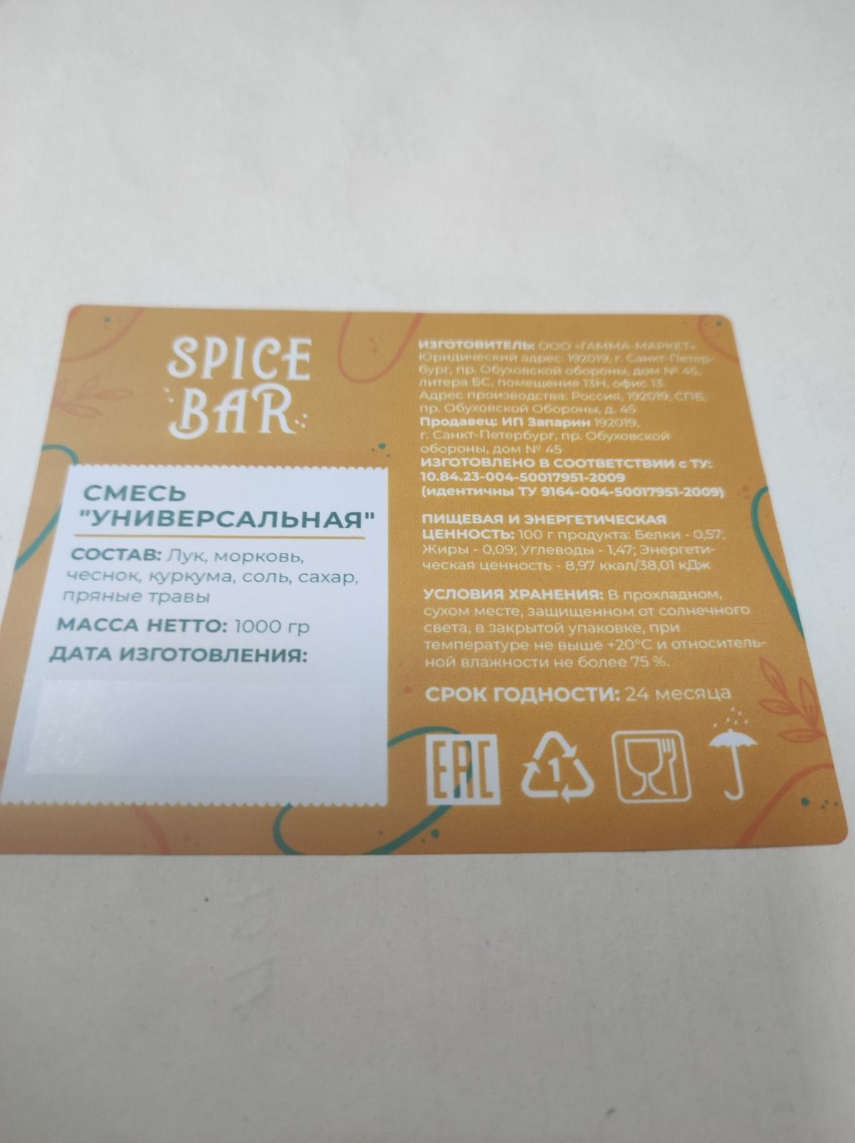 Универсальная приправа производится в удобной экономичной упаковке. Отлично сохраняет все полезные свойства и насыщенный аромат. Натуральная приправа Spice Bar - отличный подарок для мамы, бабушки, подруги. Соберите набор приправ и специй на свой вкус, чтобы радовать своих близких и друзей вкусными кулинарными шедеврами!