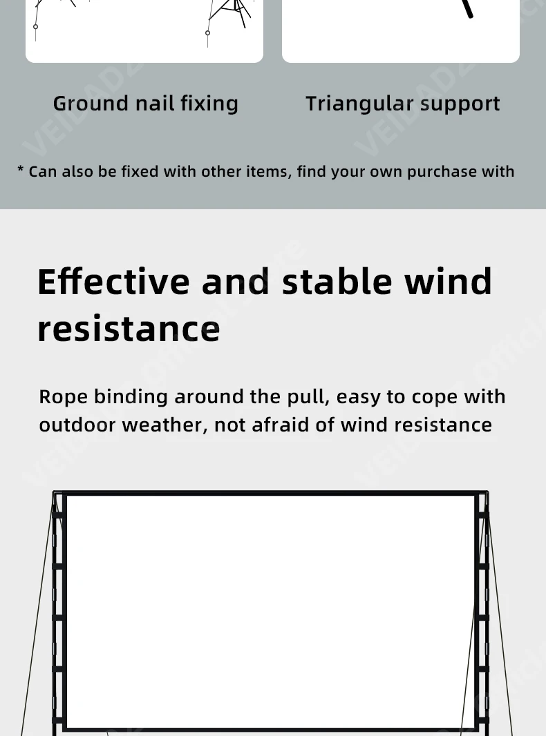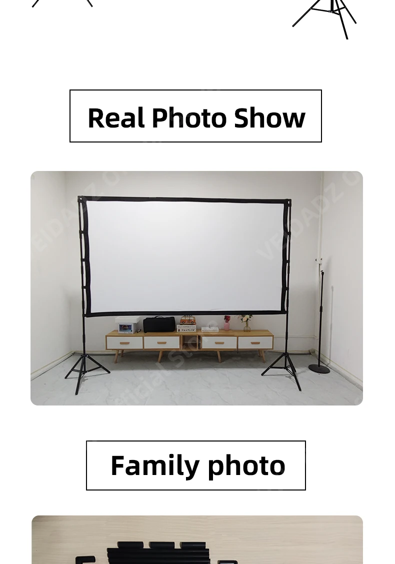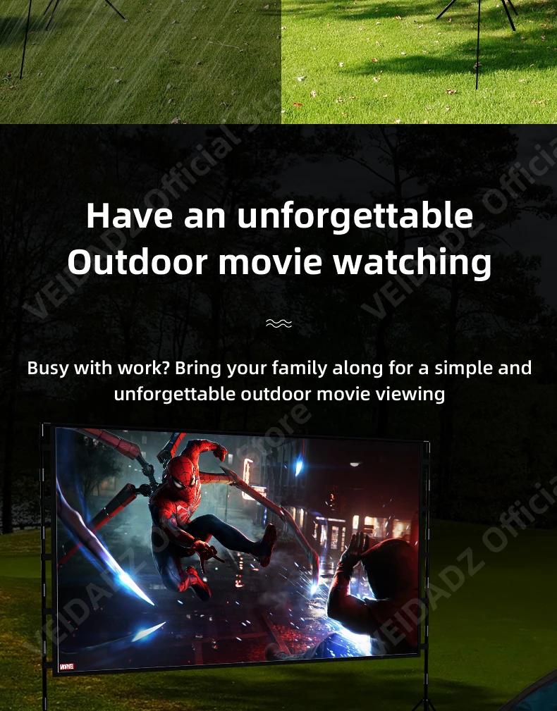 Veidadz Экран для проектора с двойным штативом, складной, белый, без складок, 100, 120 дюйма, с сумкой для переноски, Мягкая двусторонняя проекция, для улицы