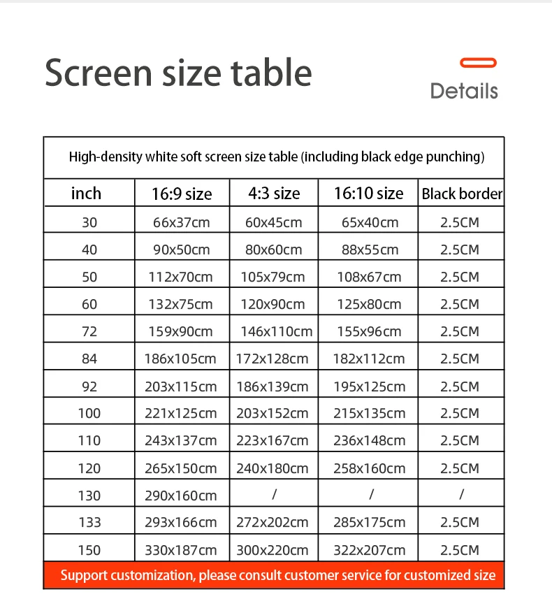 VEIDADZ Портативный складной экран для проектора, 60-200 дюймов, высокая плотность, белый, без складок, мягкий экран для проекции 16:9, для помещений и улицы