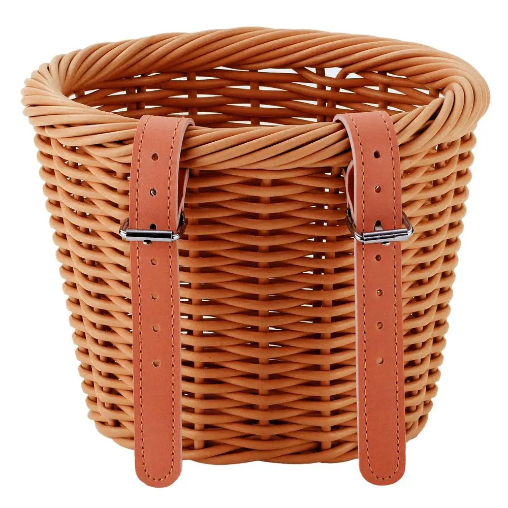 2. Плетеная велосипедная корзина устанавливается с кожаной пряжкой, регулируется по размеру, подходит для различных моделей, проста в установке и легко разбирается.