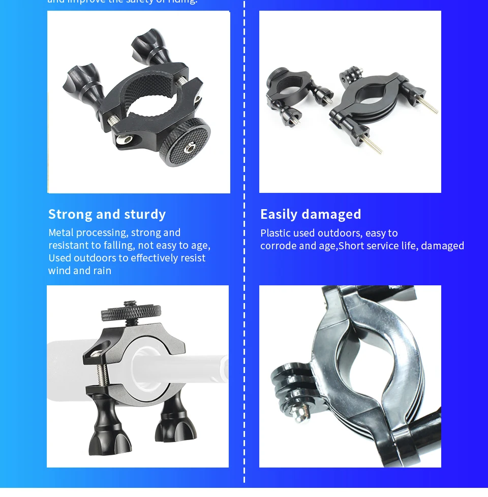 Зажим для крепления на руль велосипеда Кронштейн для зажима трубы Винт 1/4 дюйма Держатель подставки для камеры для велоспорта для GOPRO 11 10 Insta360 ONE R Osmo Action