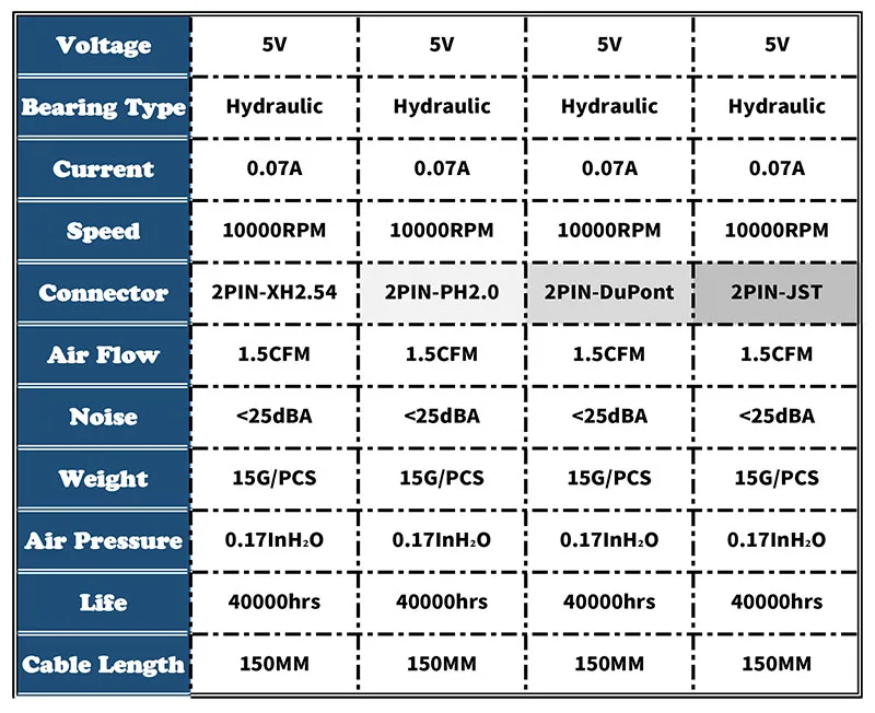 • Разъем питания: 2PIN-XH2.54/2PIN-PH2.0/2PIN-JST/2PIN-DuPont
