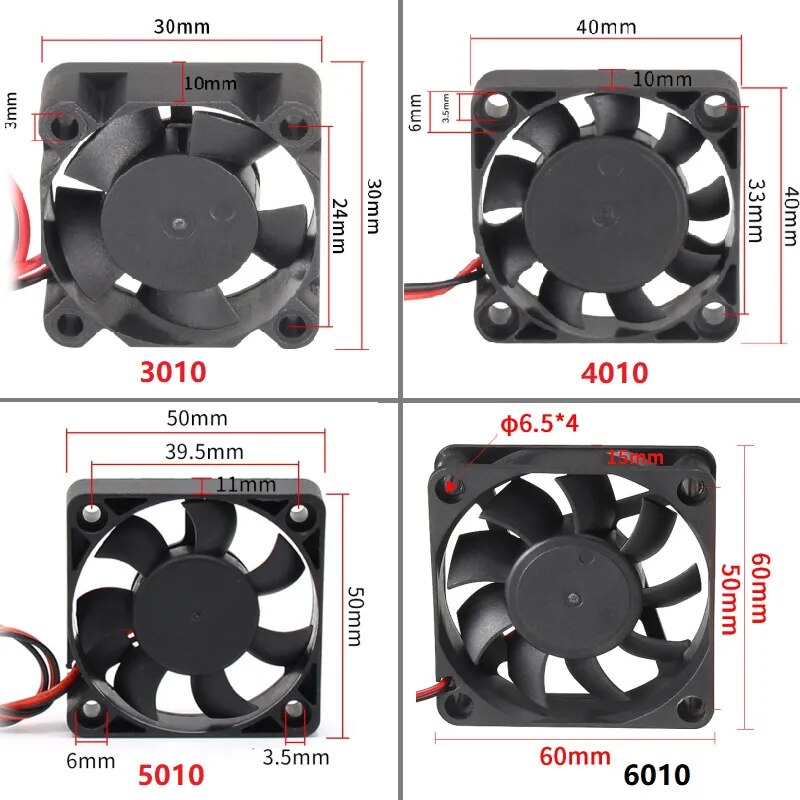 Вентилятор для 3D-принтера, 12 В, 24 В, шарикоподшипник 2510/3010/4010/5010/6015