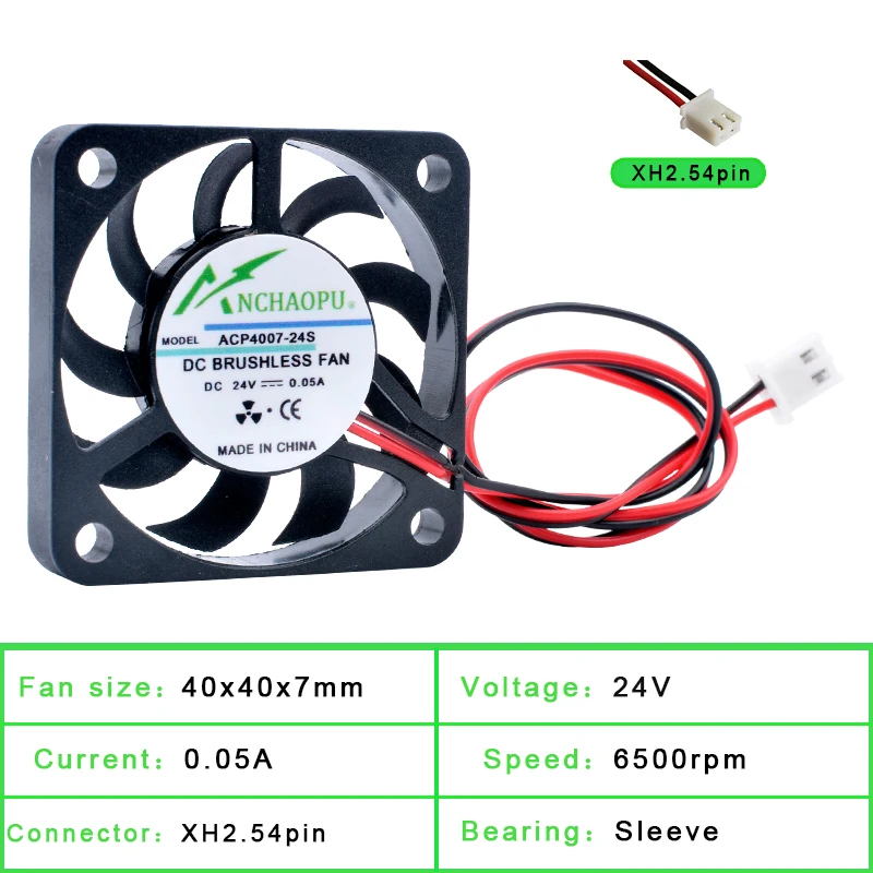Вентилятор охлаждения ACP4007, 4 см 40 мм, 40x40x7 мм, 5 в постоянного тока, 12 В, 24 В, 2 контакта, алюминиевые плавники, мягкие фрезы для микрооборудования