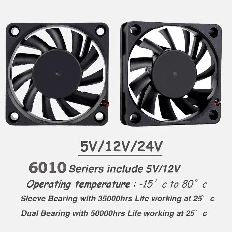 Вентилятор охлаждения для компьютера, 5 В, 12 В, 24 В, 60 мм, 6010, 60x60x10 мм, 6 см, 2 шт