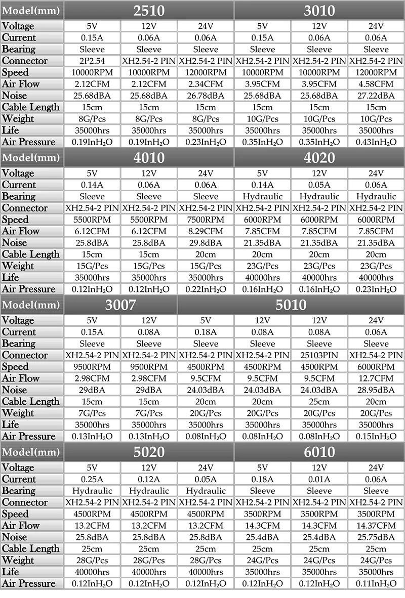 2510 3007 3010 4010 4020 5010 5020 6010 Охлаждающие вентиляторы