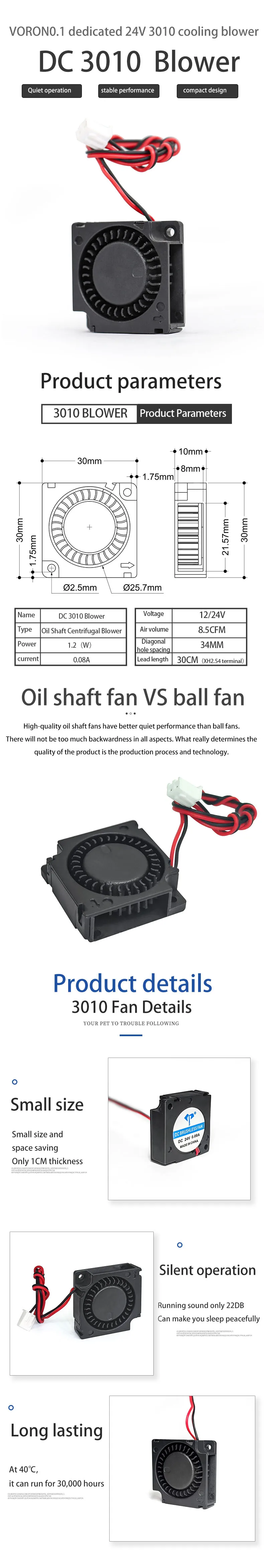 Вентилятор турбонагнетателя 3010, 24 В постоянного тока, 2pin-2. 54, 30x30x10 мм, 3010, охлаждающий вентилятор турбины, кулер для 3D-принтера Voron 0/0.1, деталь для 3D-принтера