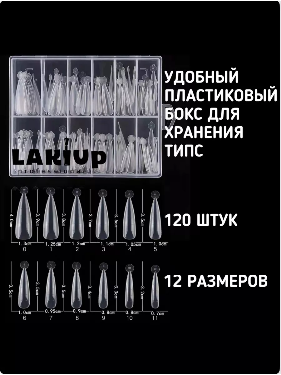 Артикул 163835902 Состав 1 пластиковый бокс, 120 шт пластиковых типс для наращивания
