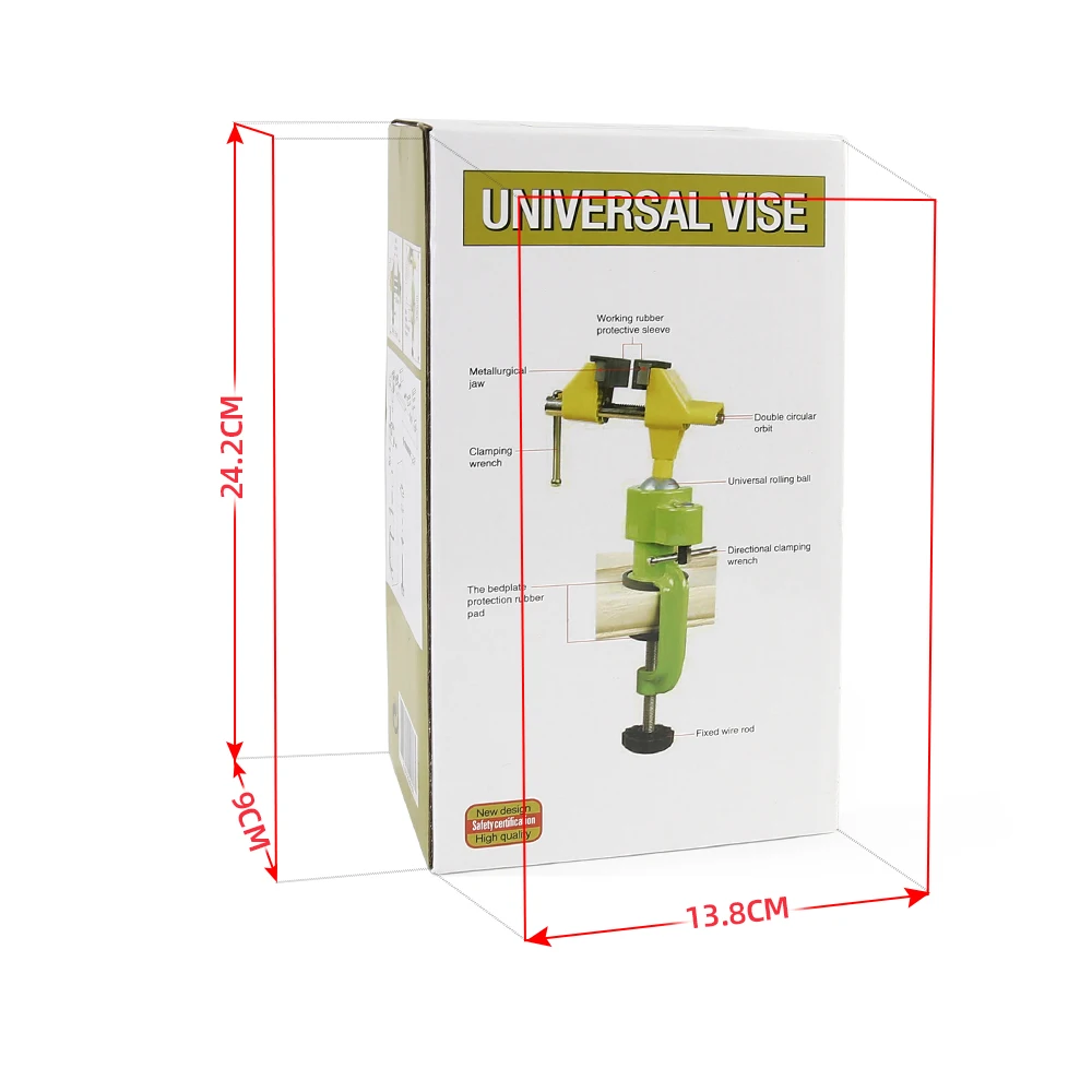 • Эта тиска очень проста в использовании. Может быть размещен там, где вам нужно работать, ширина зажима достаточно для любого верстака или стола с толщиной 50 мм.